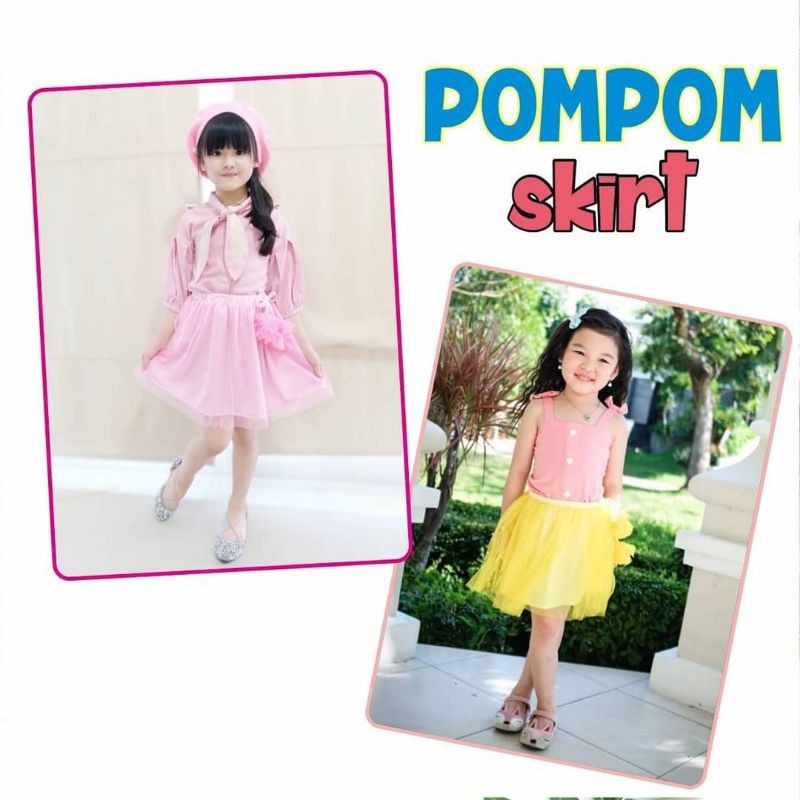 Rok Anak POMPOM SKIRT/ROK TUTU bahan katun mix tille size 1-5tahun