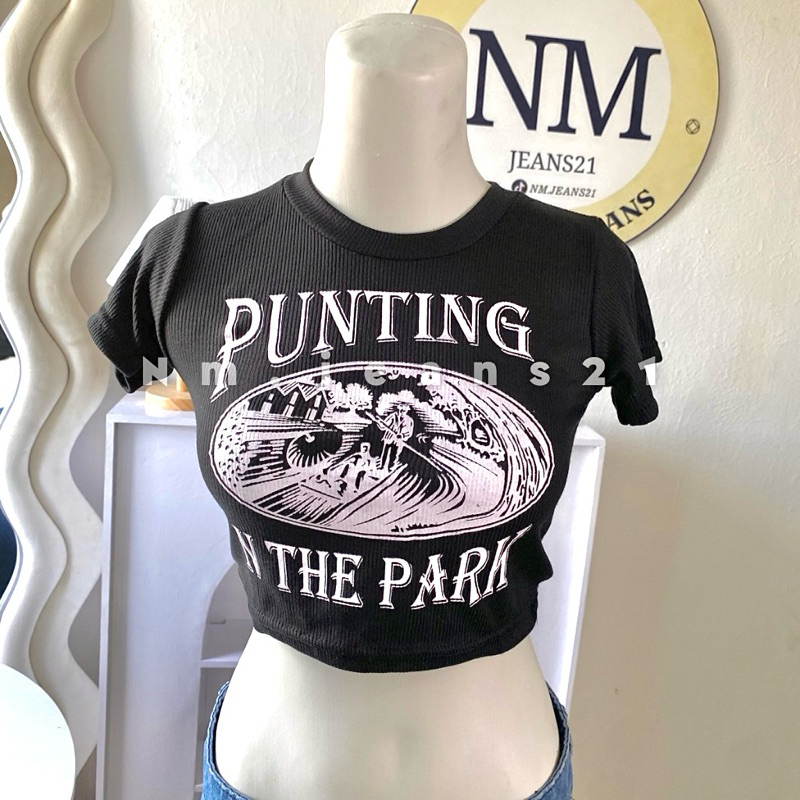 PUNTING N THE PARK CROP TOP KOREAN STYLE RIB KNIT WANITA REMAJA LENGAN PENDEK PREMIUM