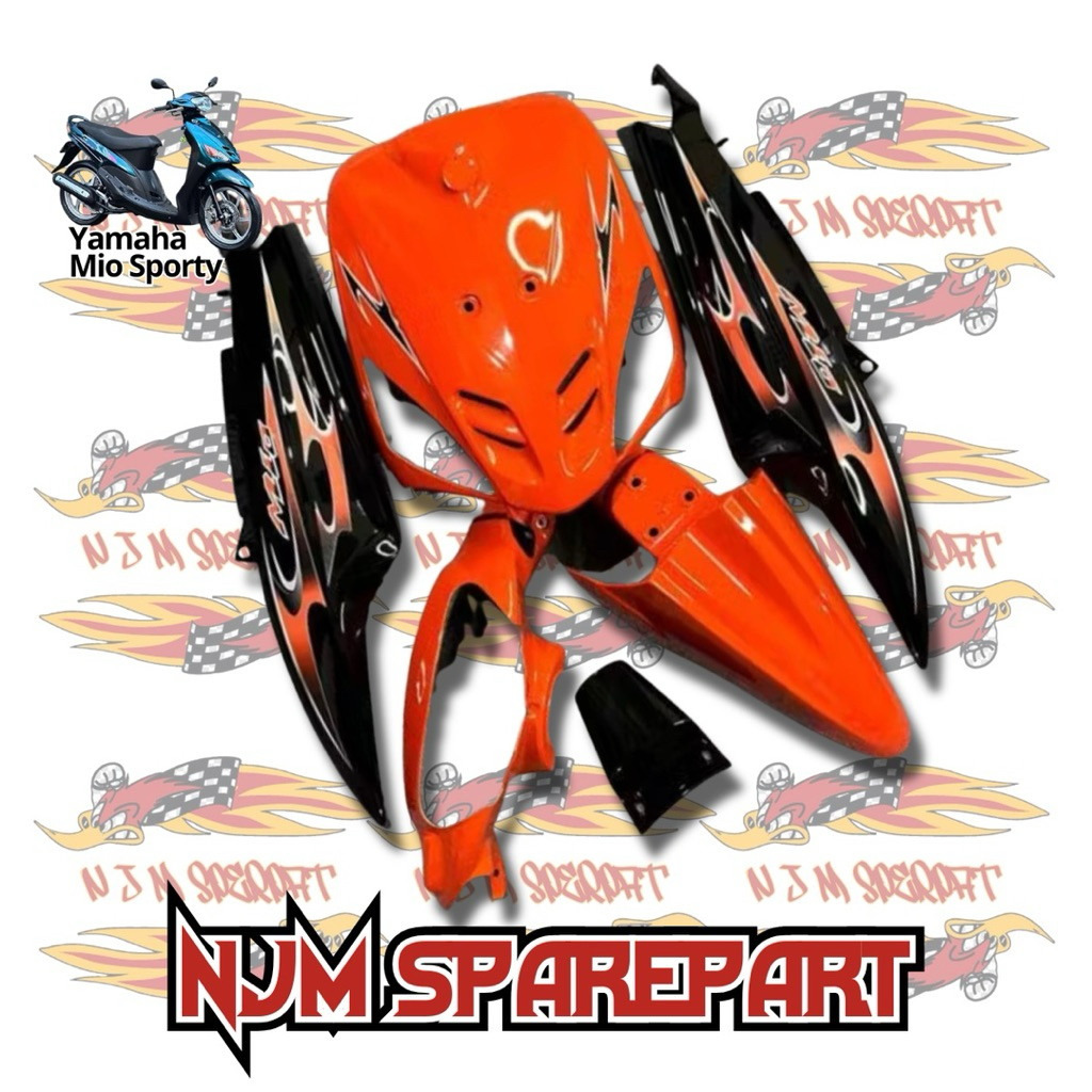 Cover Full Body Halus Yamaha Mio Sporty Vietnam Style Oren Sunkist Mix Hitam Plus Striping Varky Transparan