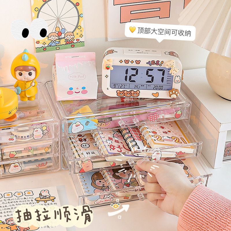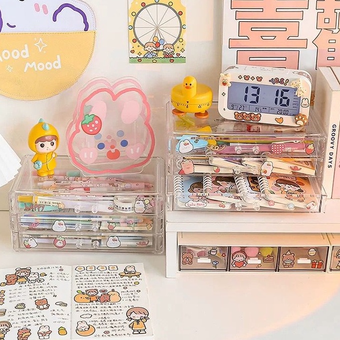 [randomstuff] Rak Laci 3 in 1 Rak Akrilik Transparan Berkualitas Acrylic Storage Drawer Tempat Penyimpanan Serbaguna Stationary Kit Storage Room Decoration Kapasitas Besar