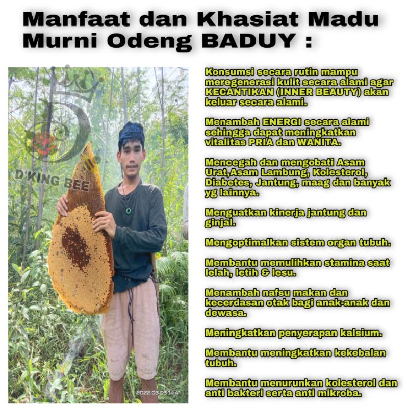 Madu Murni Odeng Baduy 1 Liter - Madu Hutan Liar Baduy - Madu Asli Baduy - D'KING BEE - Baduy Forest Honey - Madu - Madu Hutan