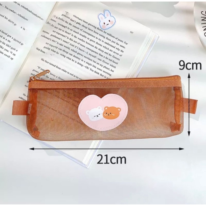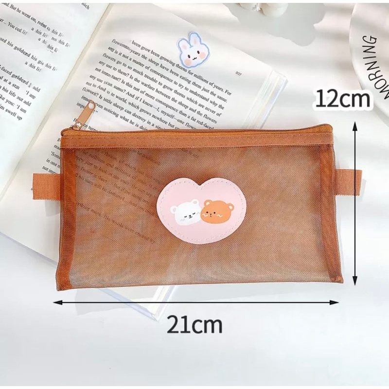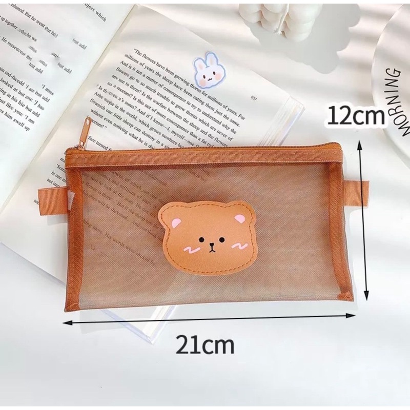 TEMPAT PENSIL / KOTAK PENSIL ALAT TULIS / TEMPAT MAKEUP TEDDY BROWN MODEL JARING JRW0096