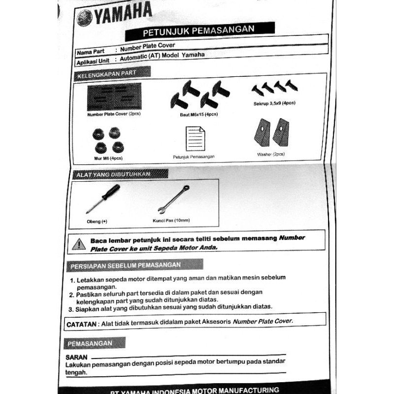 (Depan & Belakang )Tempat Dudukan Plat Nomor KT Maxi Lexi Freego Mio Cover Motor Yamaha plus Baut