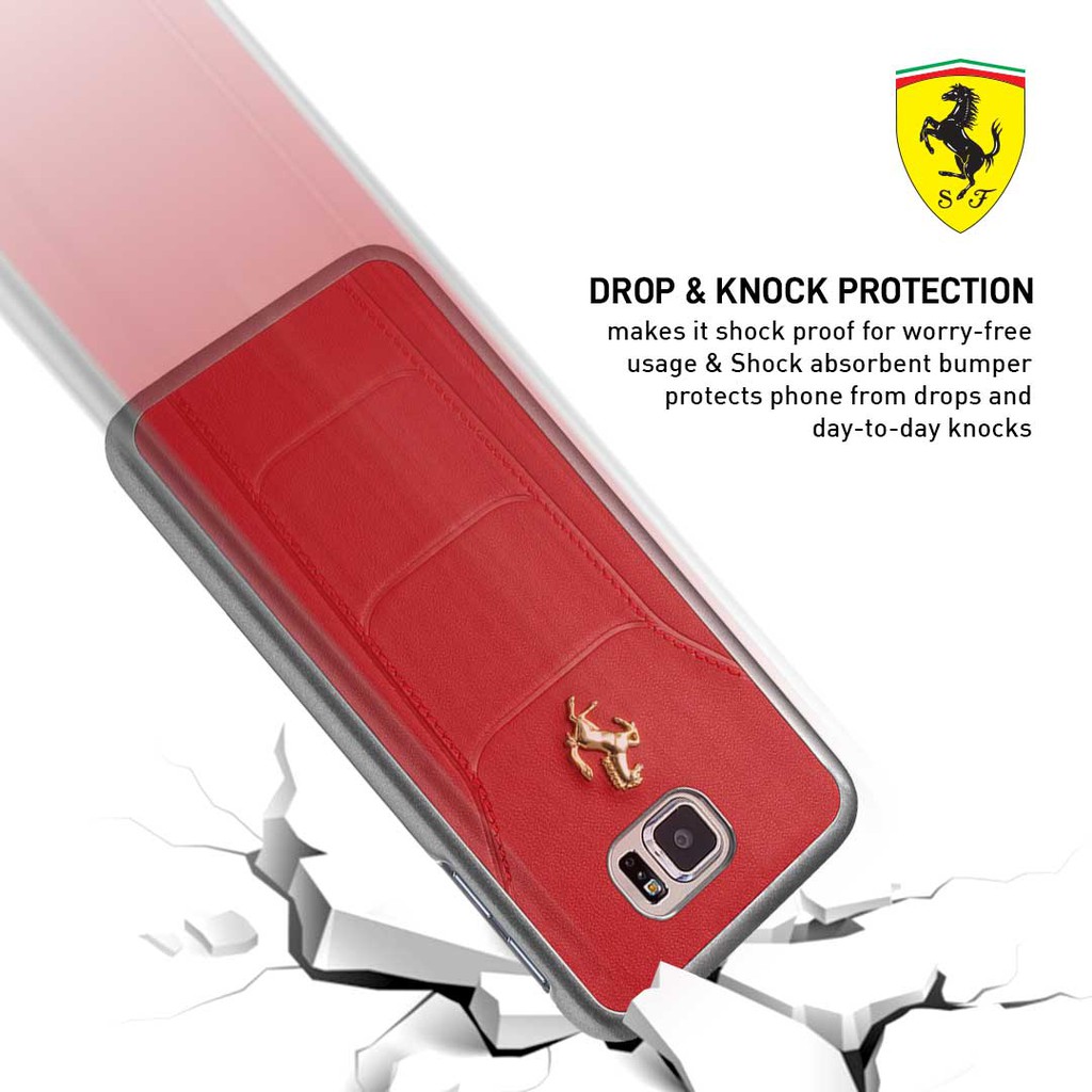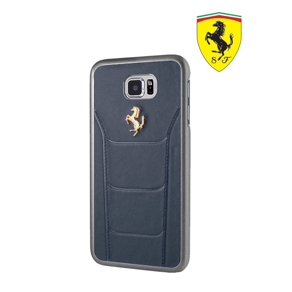 Ferrari - Gold Debossed Leather - Case / Casing Samsung Galaxy Note FE - Blue