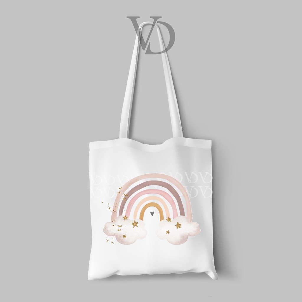 VORDEE TOTE BAG KANVAS MOTIF ABSTRACT ART TERBARU / rainbow TOTE BAG / TAS BELANJA MOTIF pelangi