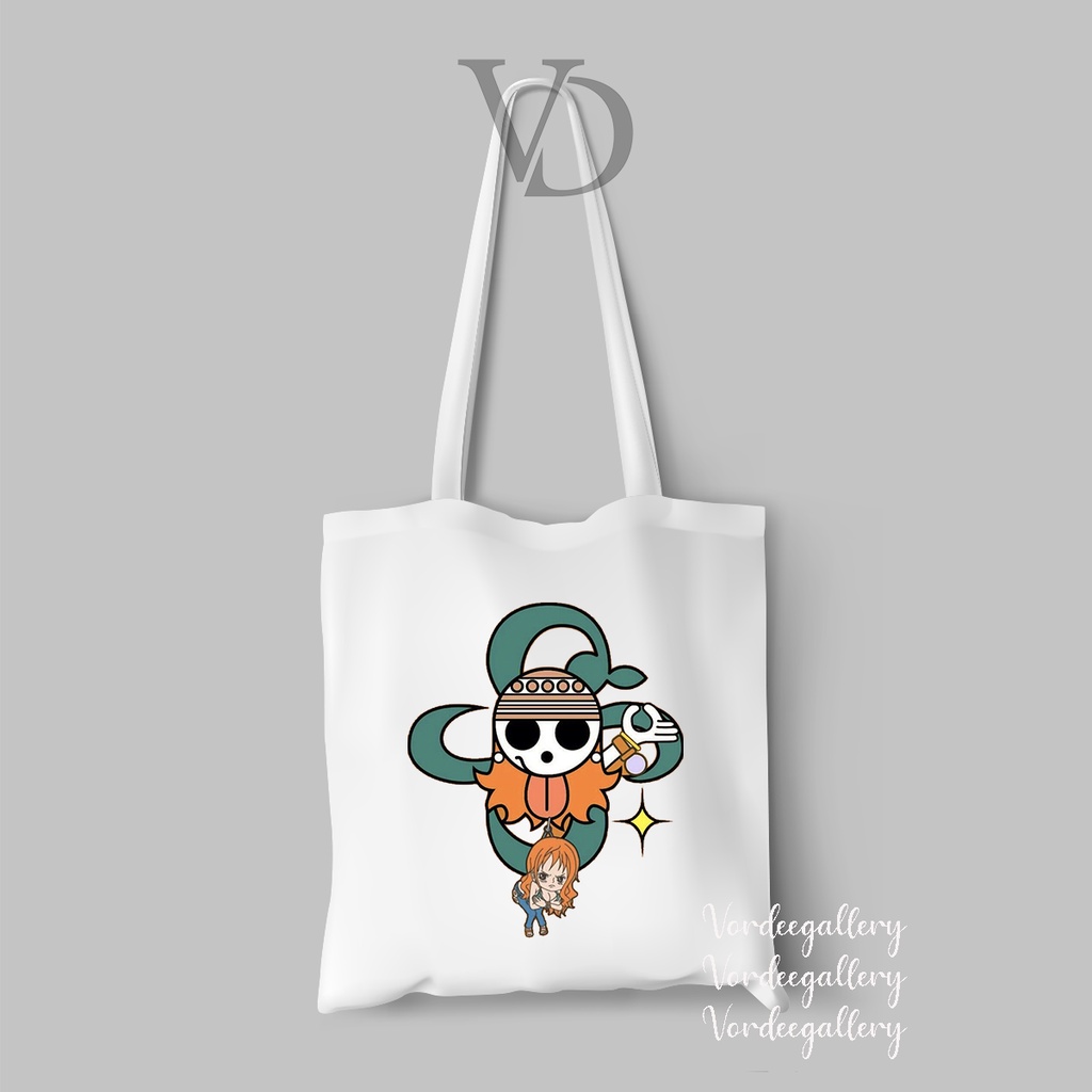 tote bag kanvas gambar one piece chibi cute nami luffy zoro / tas anime jepang ver 1