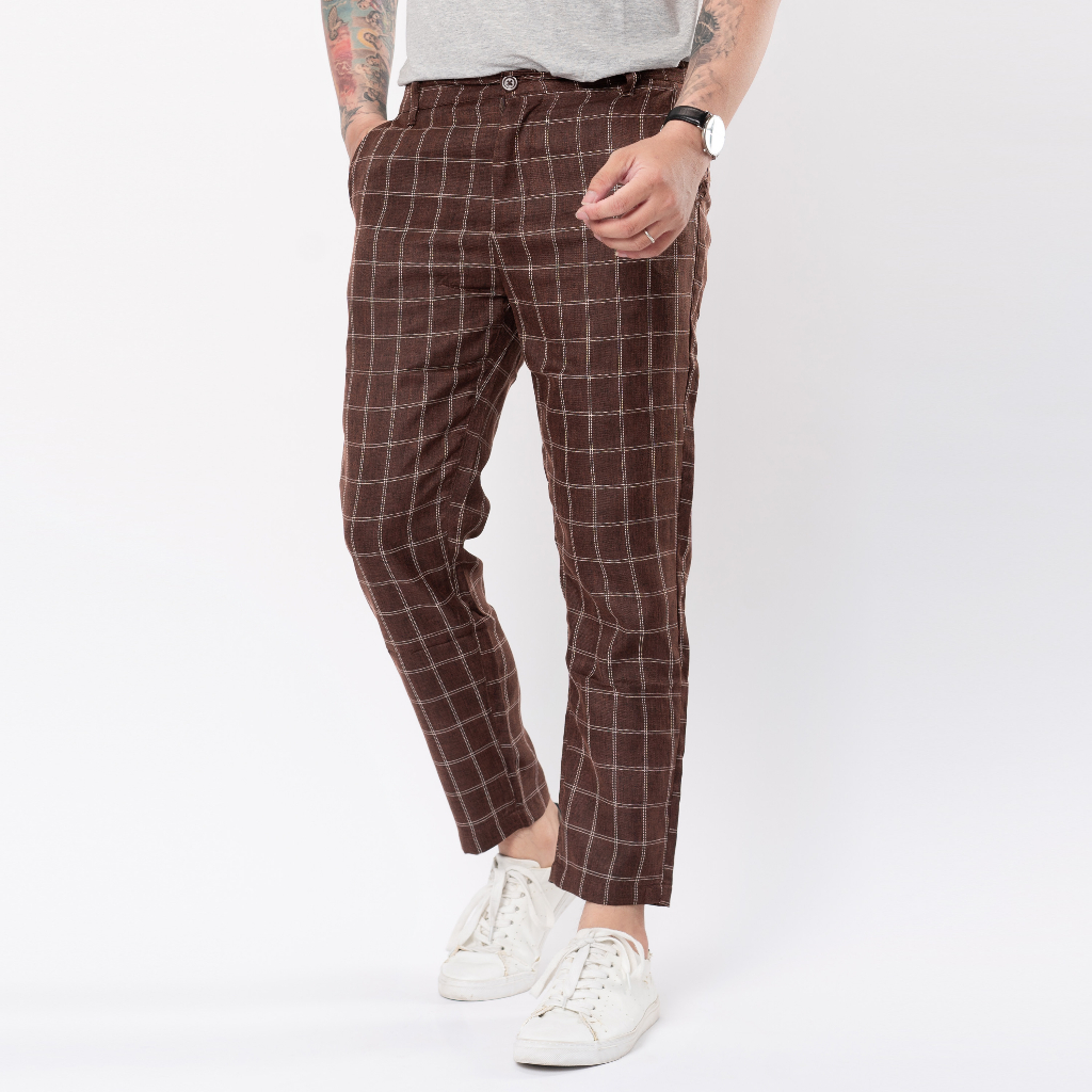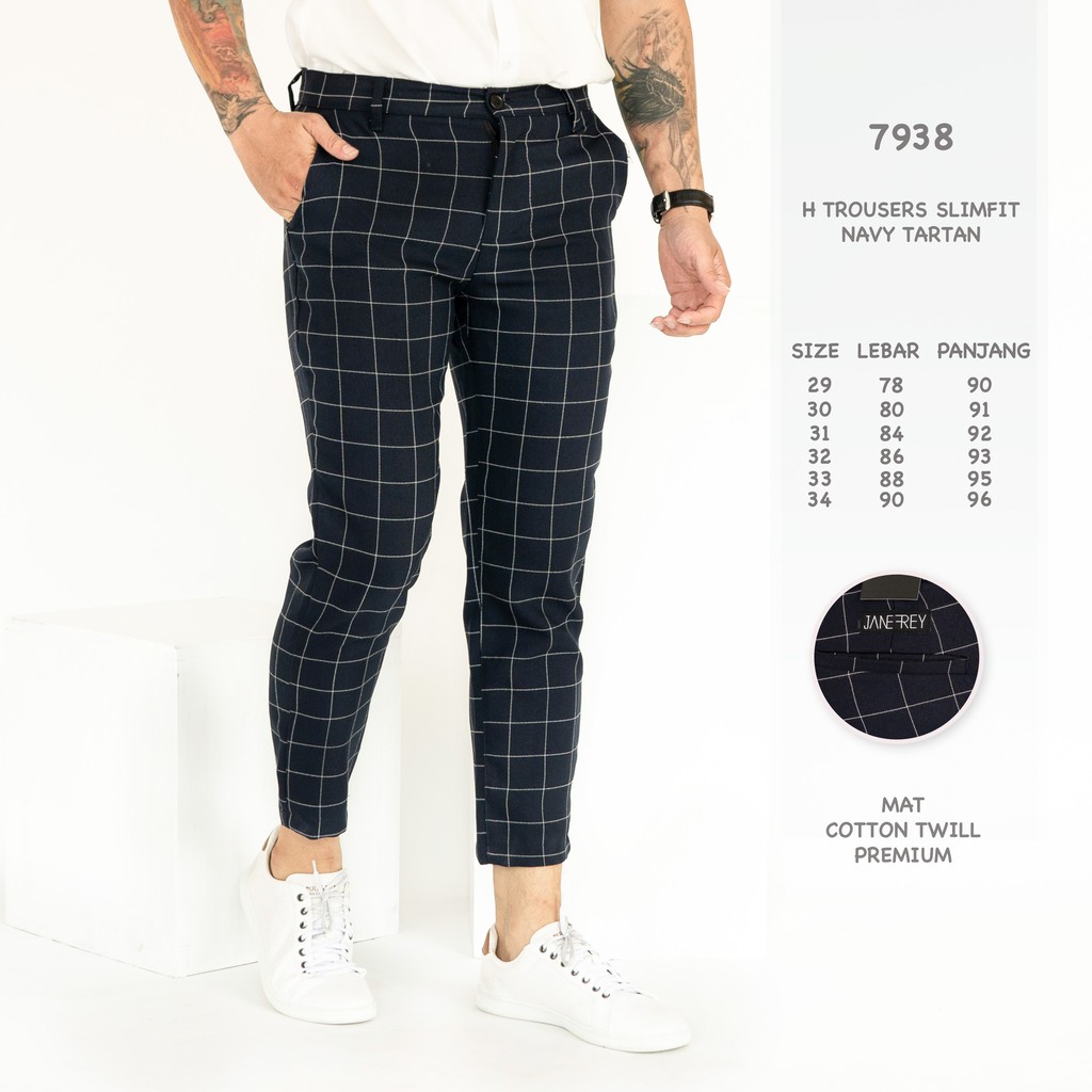 Jane Frey Clothing Celana Panjang Pria | Freypv 7938 Trousers Slimfit Tartan Grey Navy 29-34 Celana Panjang