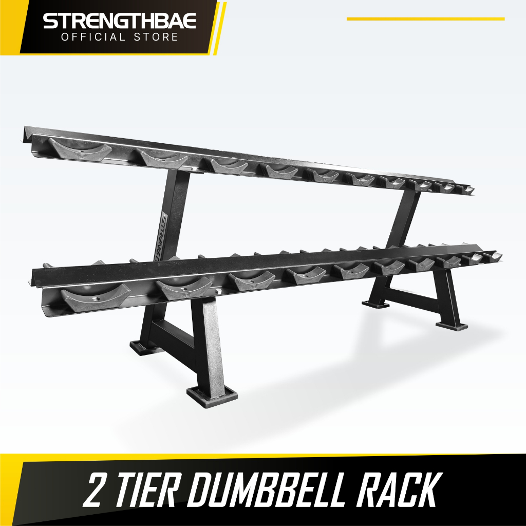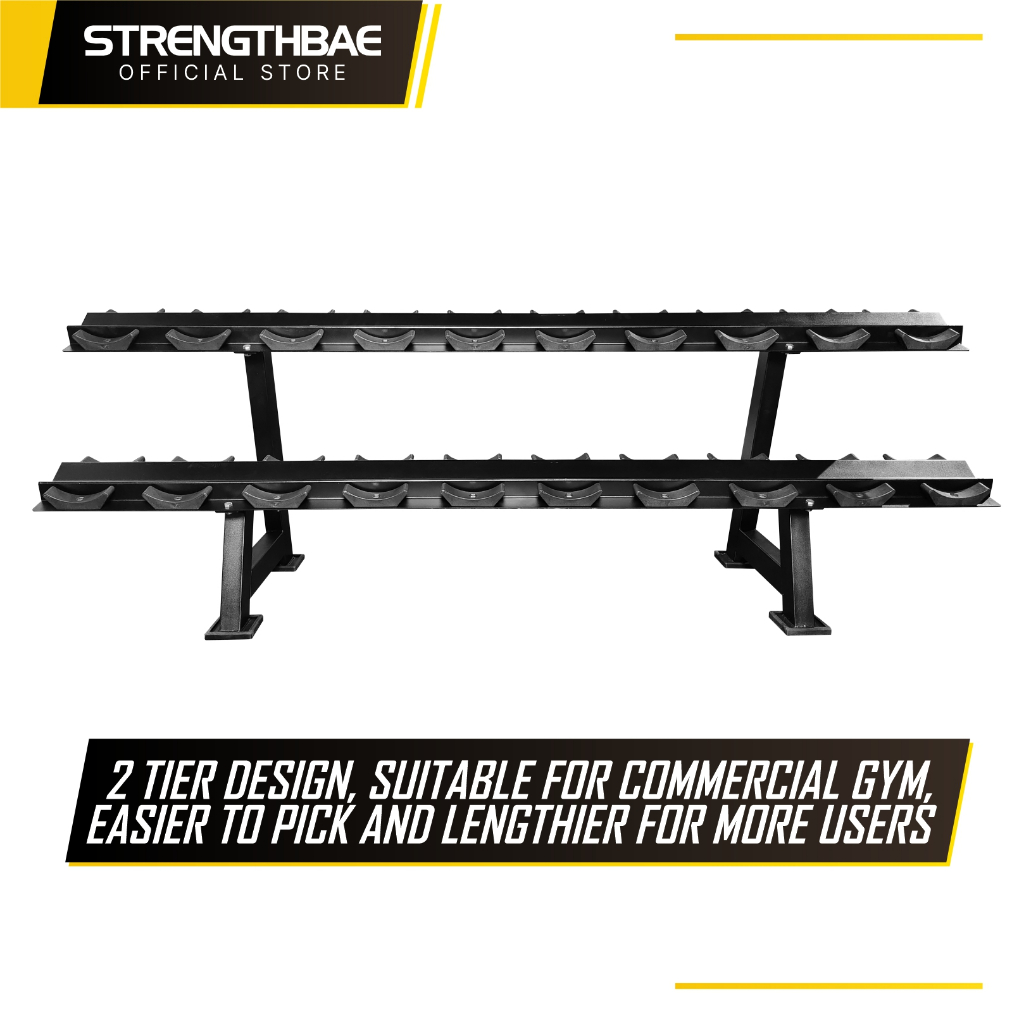 Dumbbell Rack 2 Tier STRENGTHBAE Rak Dumbell Round Dumbel Hex Dumbbel Commercial Gym 2 Tingkat