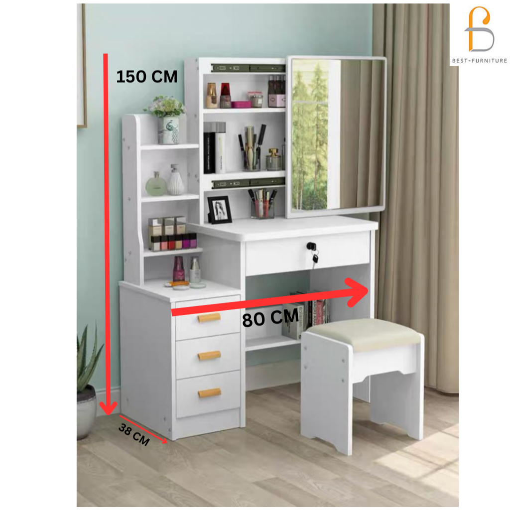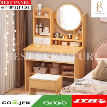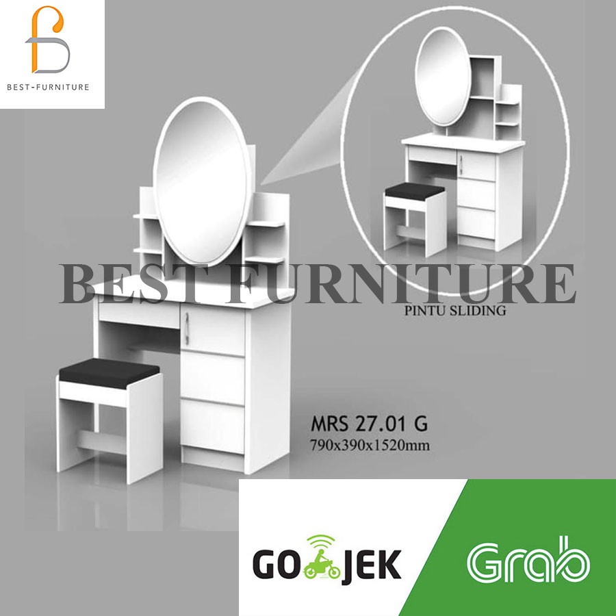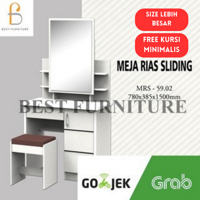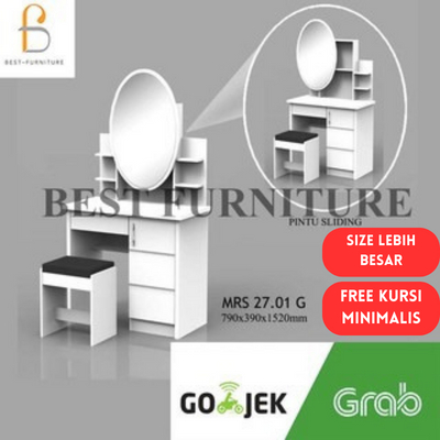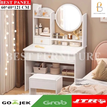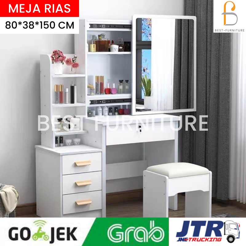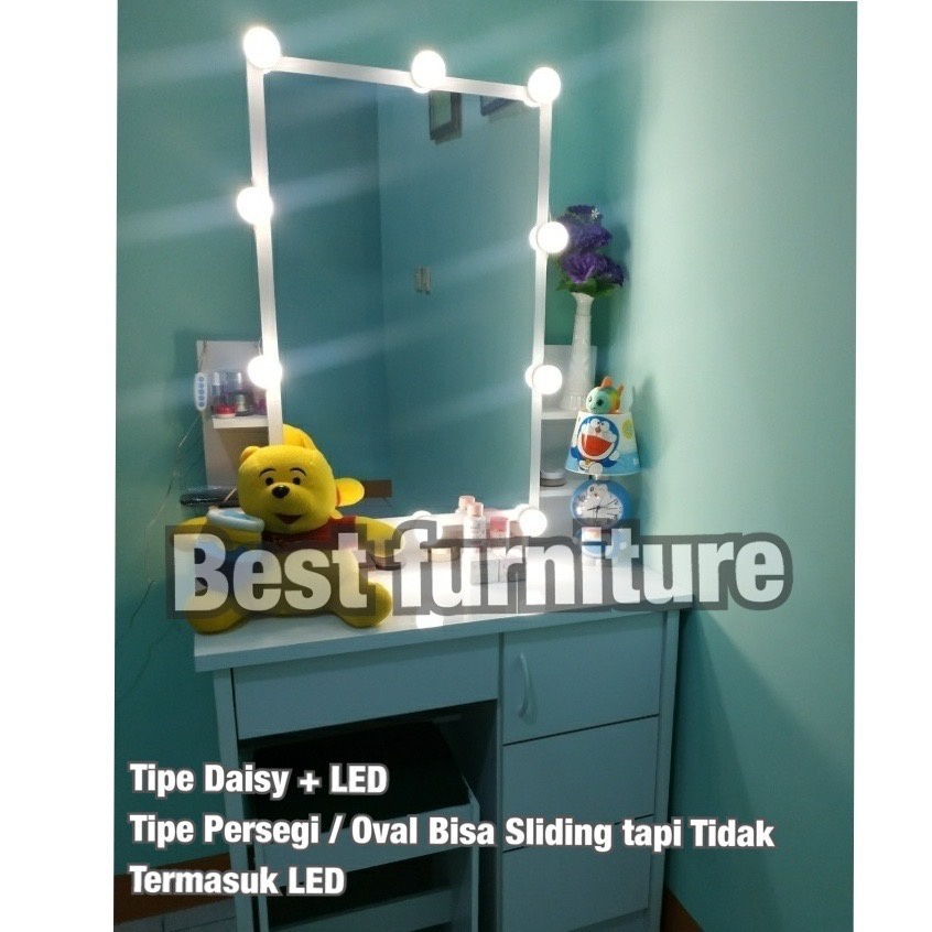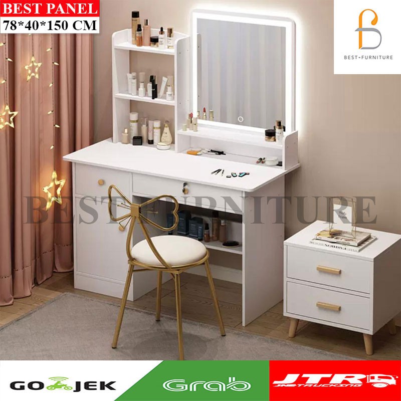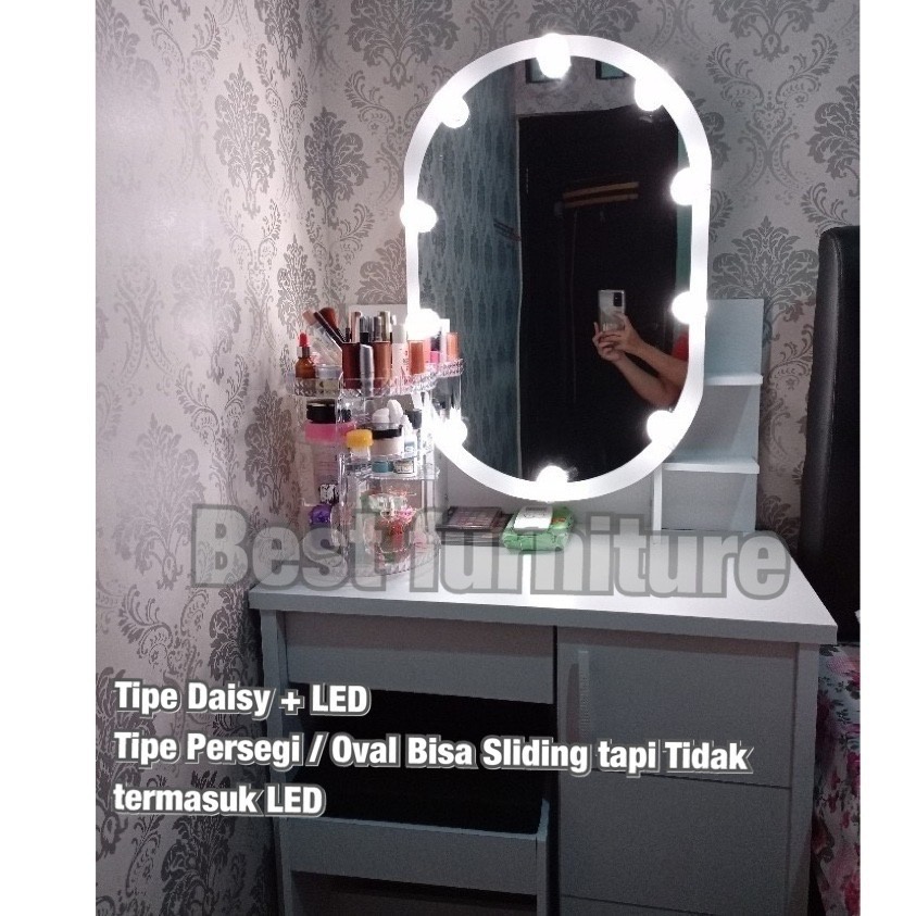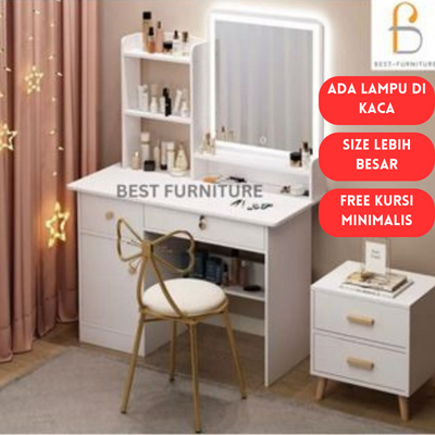 BEST [FREE KURSI ] Meja Rias Putih Lampu LED Meja Rias Kaca Sliding Kaca Minimalis FREE Kursi
