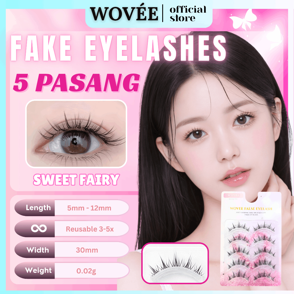 Wovee Soft Fake Eyelash 3-5 Pairs | Bulu Mata Palsu Utuh Douyin Natural Korean False Eyelash One Piece