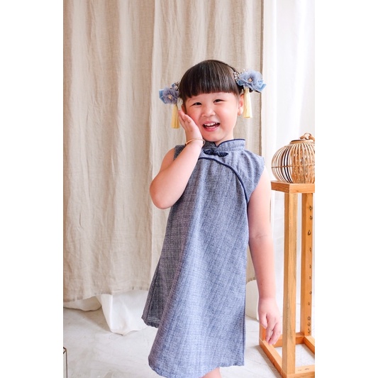 Dress Imlek Anak Perempuan Qipao Cheongsam / MEI DRESS NAVY