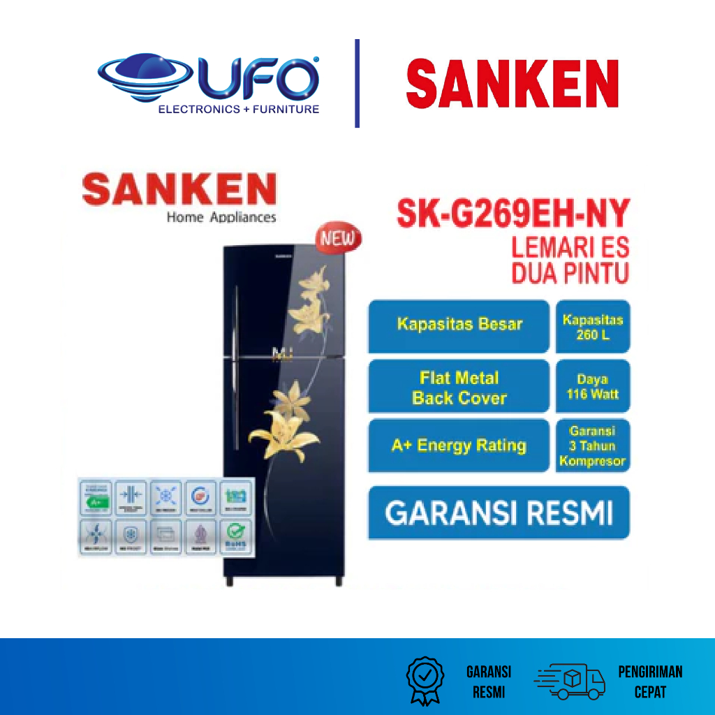 Kulkas 2 Pintu SANKEN Kapasitas 260 Liter SKG269EHNY Motif Bunga