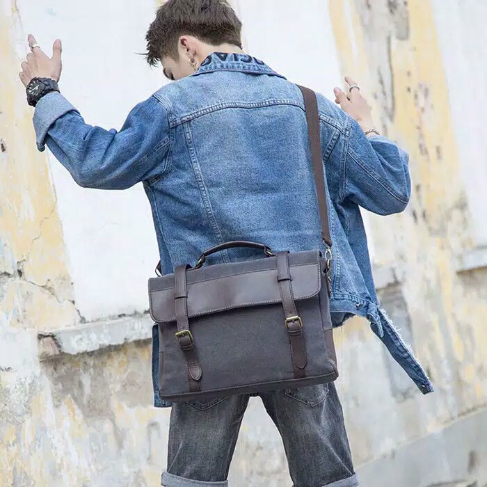 Pengiriman Cepat. Tas Selempang Kerja Pria. Tas Pria Bahan Canvas Slingbag import (emaati650)