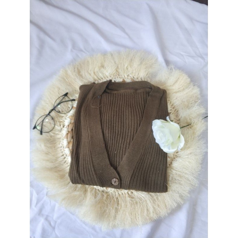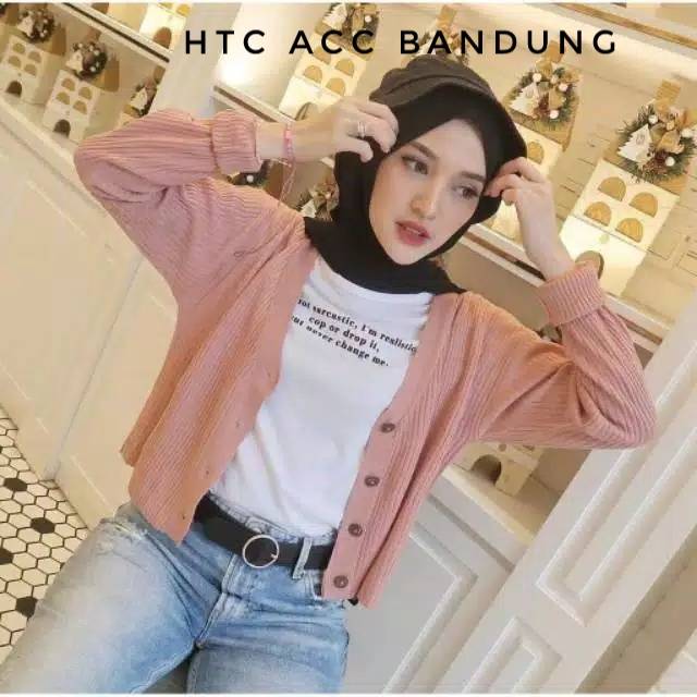 CARDIGAN RAJUT SALUR KANCING BATOK | Cardy Crop Rajut Wanita Oversize