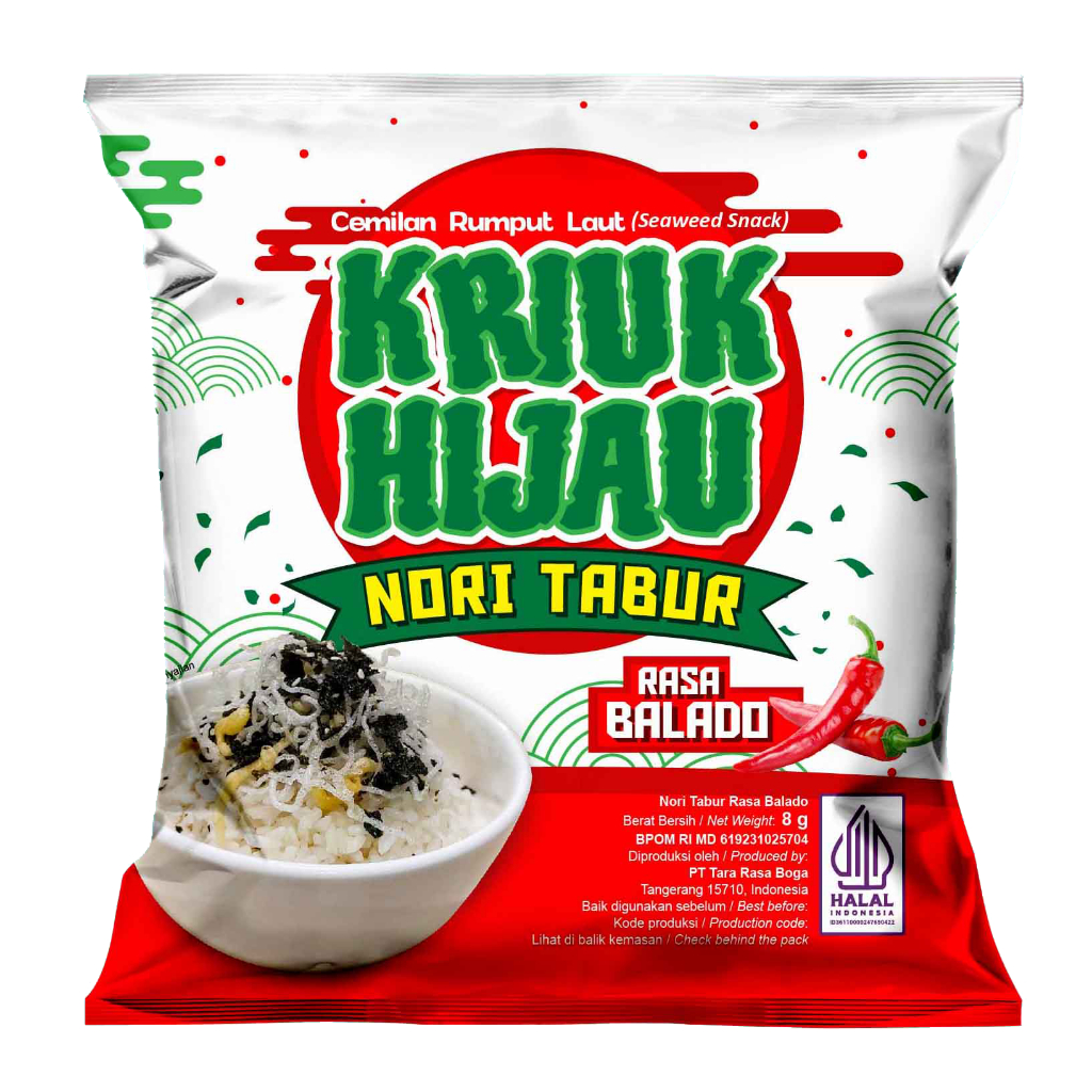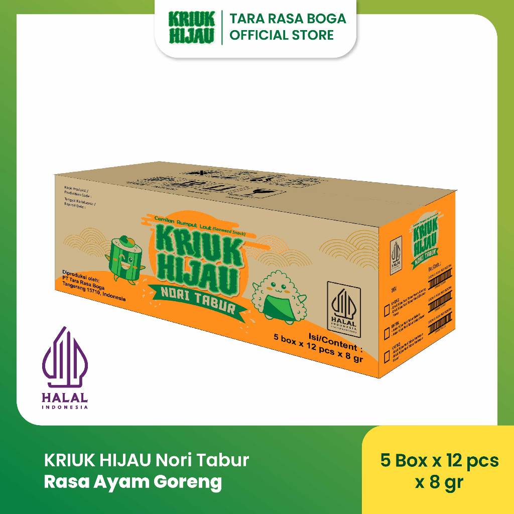 Kriuk Hijau - Nori Tabur Snack Rumput Laut 8gr 1 Karton (60pcs)
