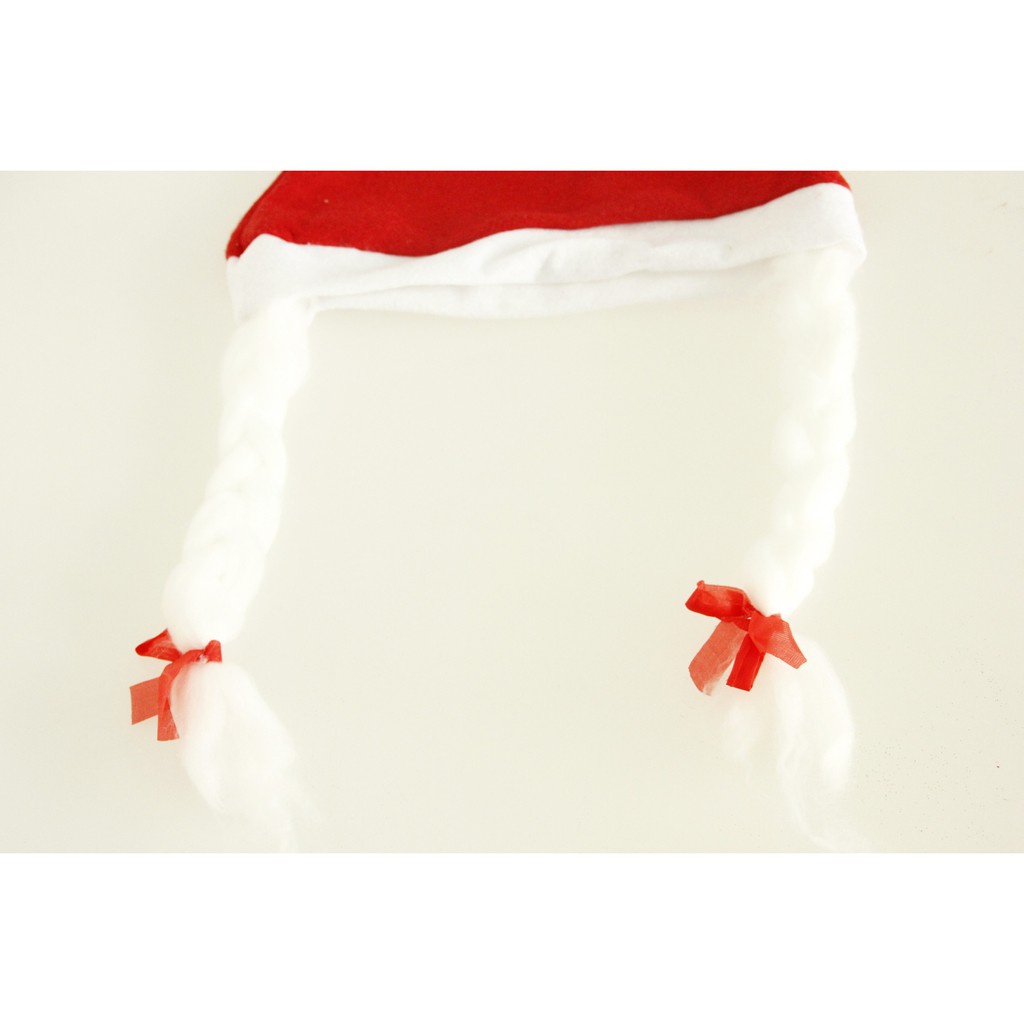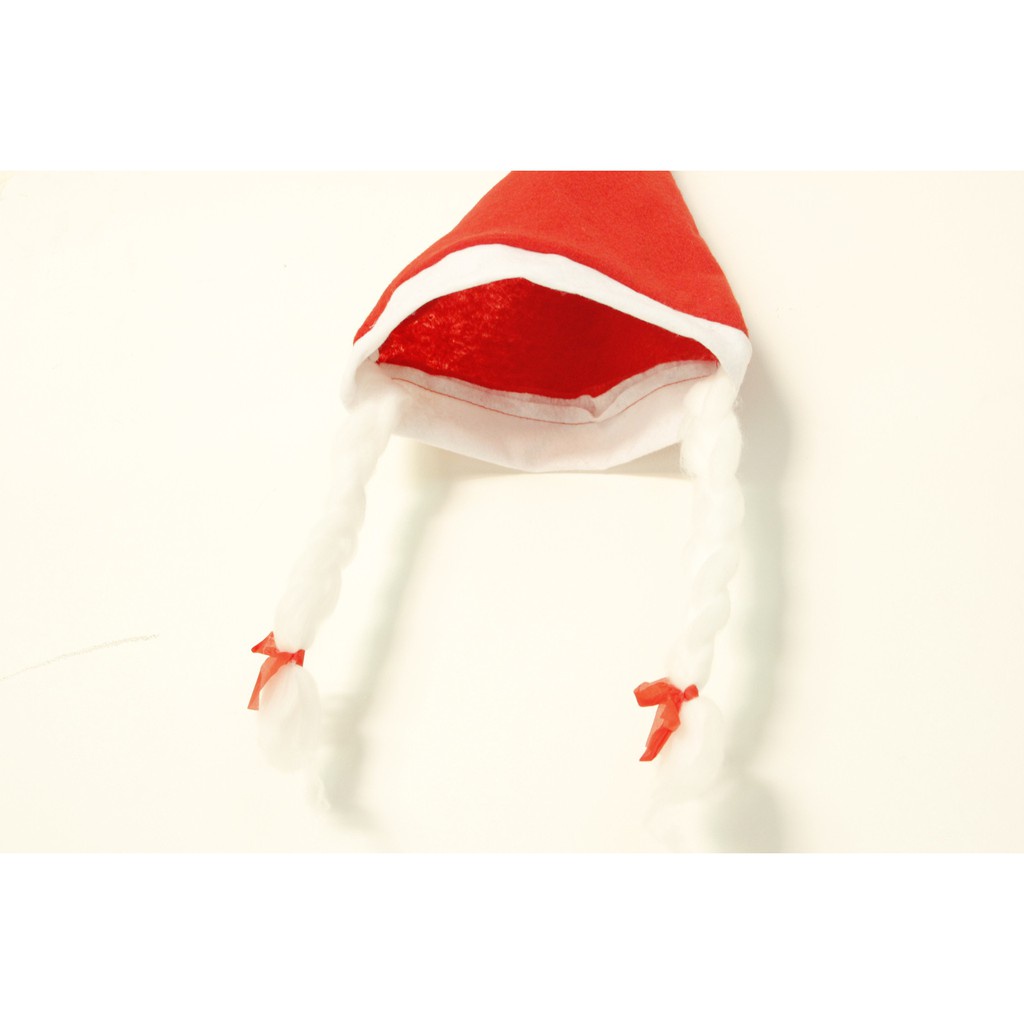 XHBR topi natal kepang braided rambut merah santa claus christmas hat