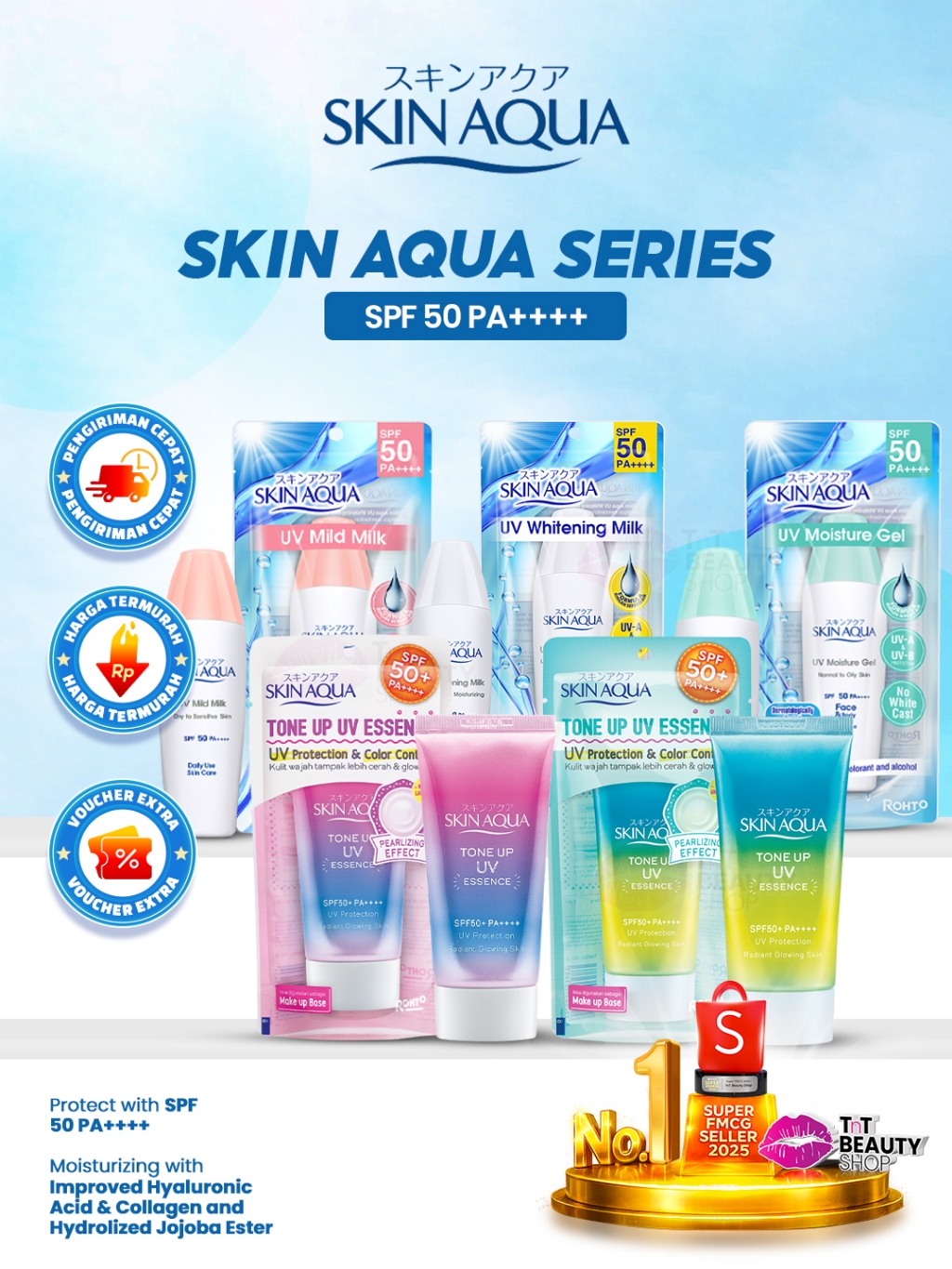 SKIN AQUA Tone Up UV Essence | Moisture Milk SPF 50+ PA+++ 40g Moist Gel SPF 30 | TnT Beauty Shop