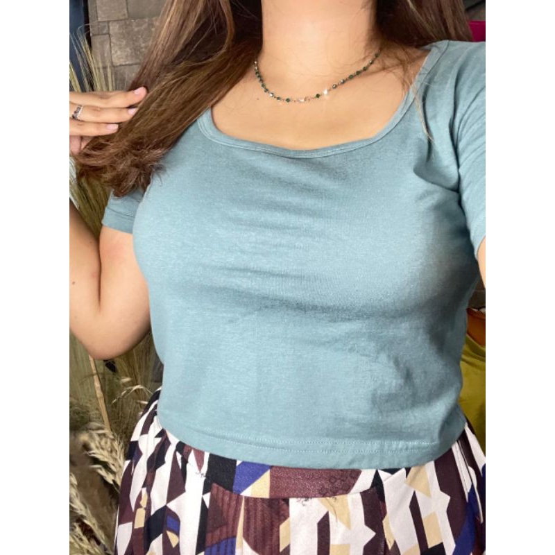 Kaos Crop top wanita Kaos crop U neck bahan katun combed 30s baju atasan wanita