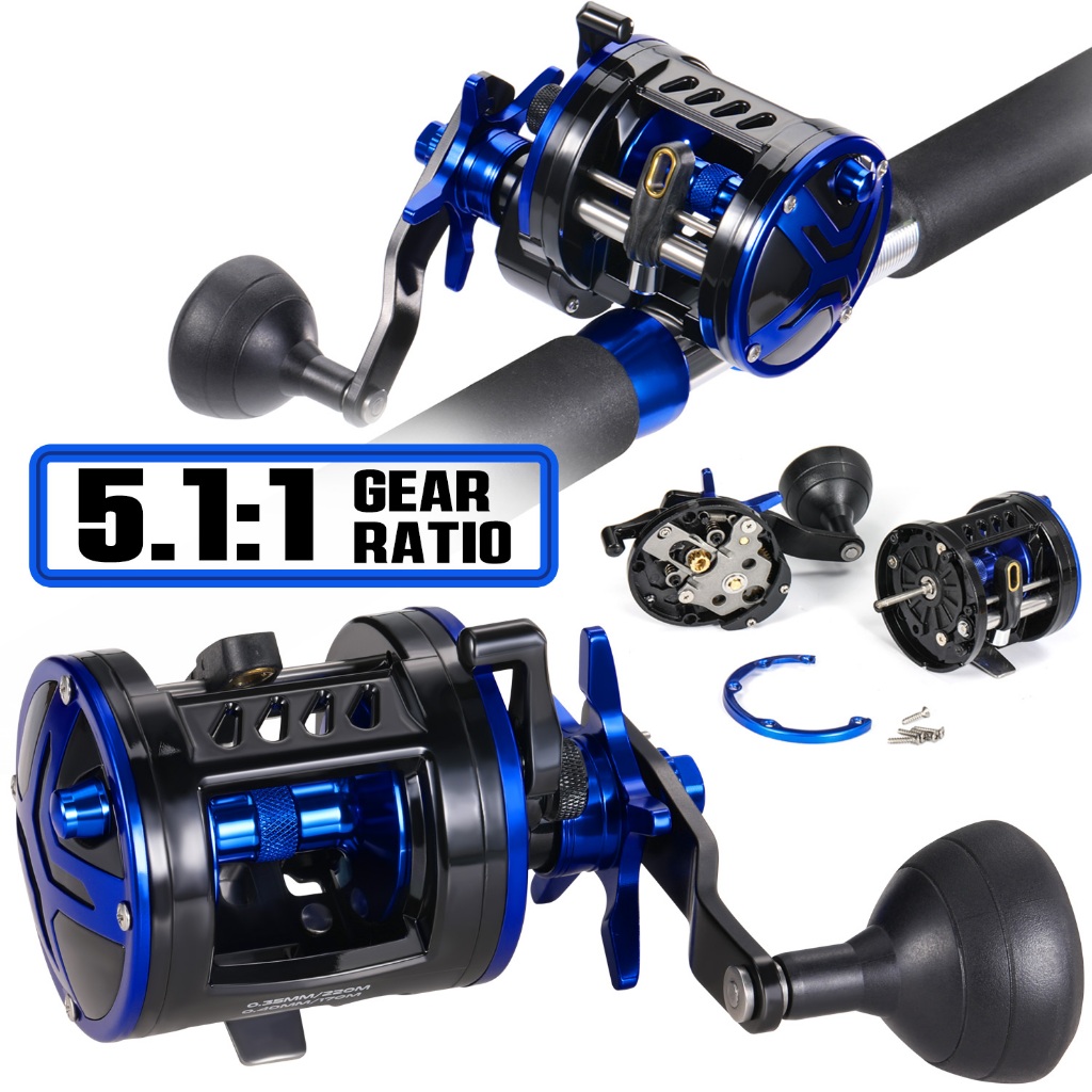 Sougayilang Drum Fishing Reel Trolling Fishing Reel Maximum Drag Force 25Kg Spinning Fishing Reel left Hand Type Fishing Reel Drum for Saltwater Boat Fishing Outdoor Fishing Fishing Tackle