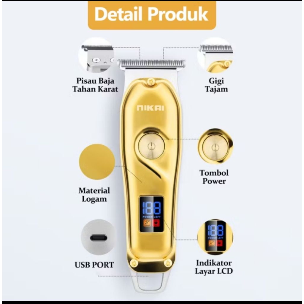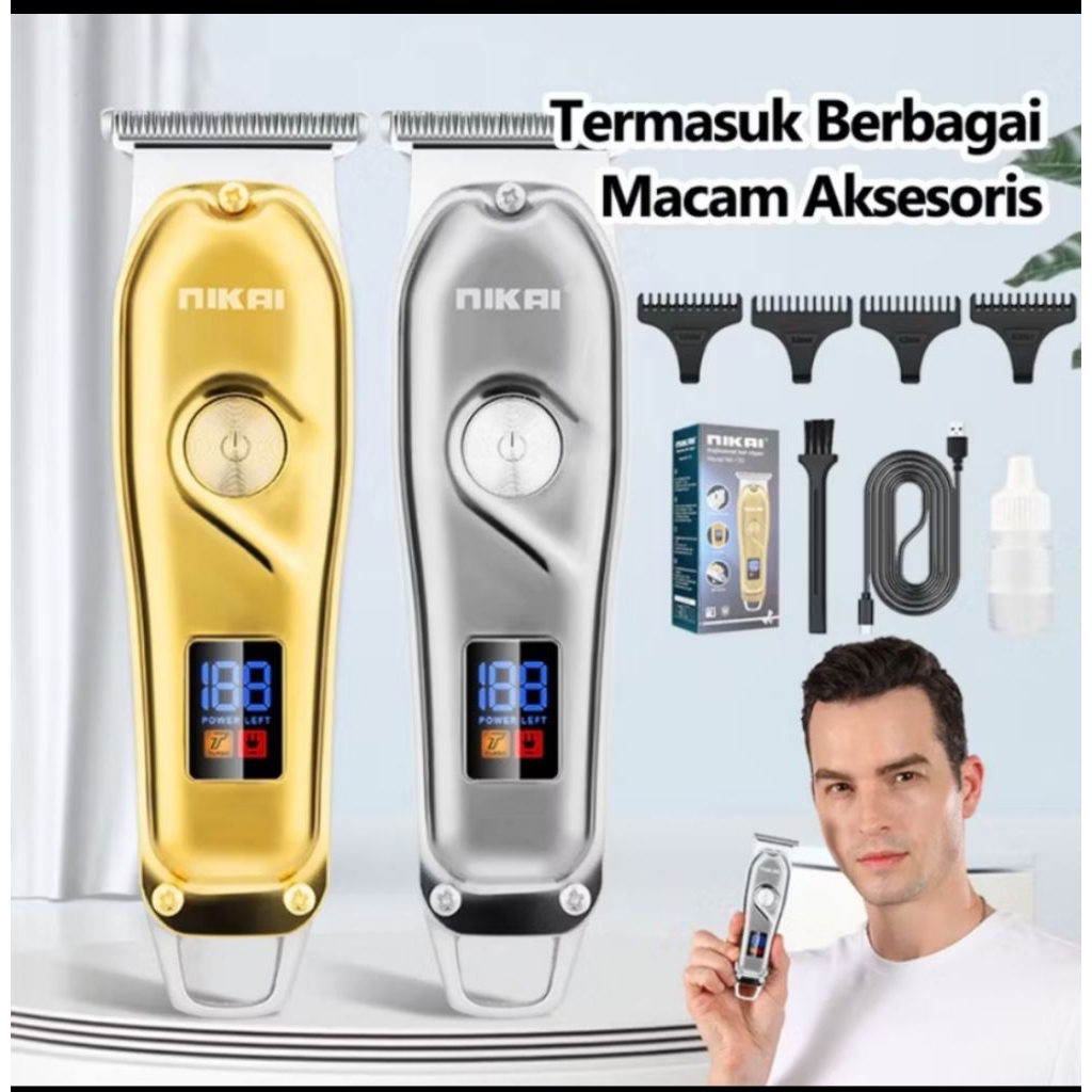 NIKAI NK133 Trimmer Cukur Rambut & Jenggot Pria – Mesin Potong Rambut Elektrik Rechargeable LCD Display Profesional