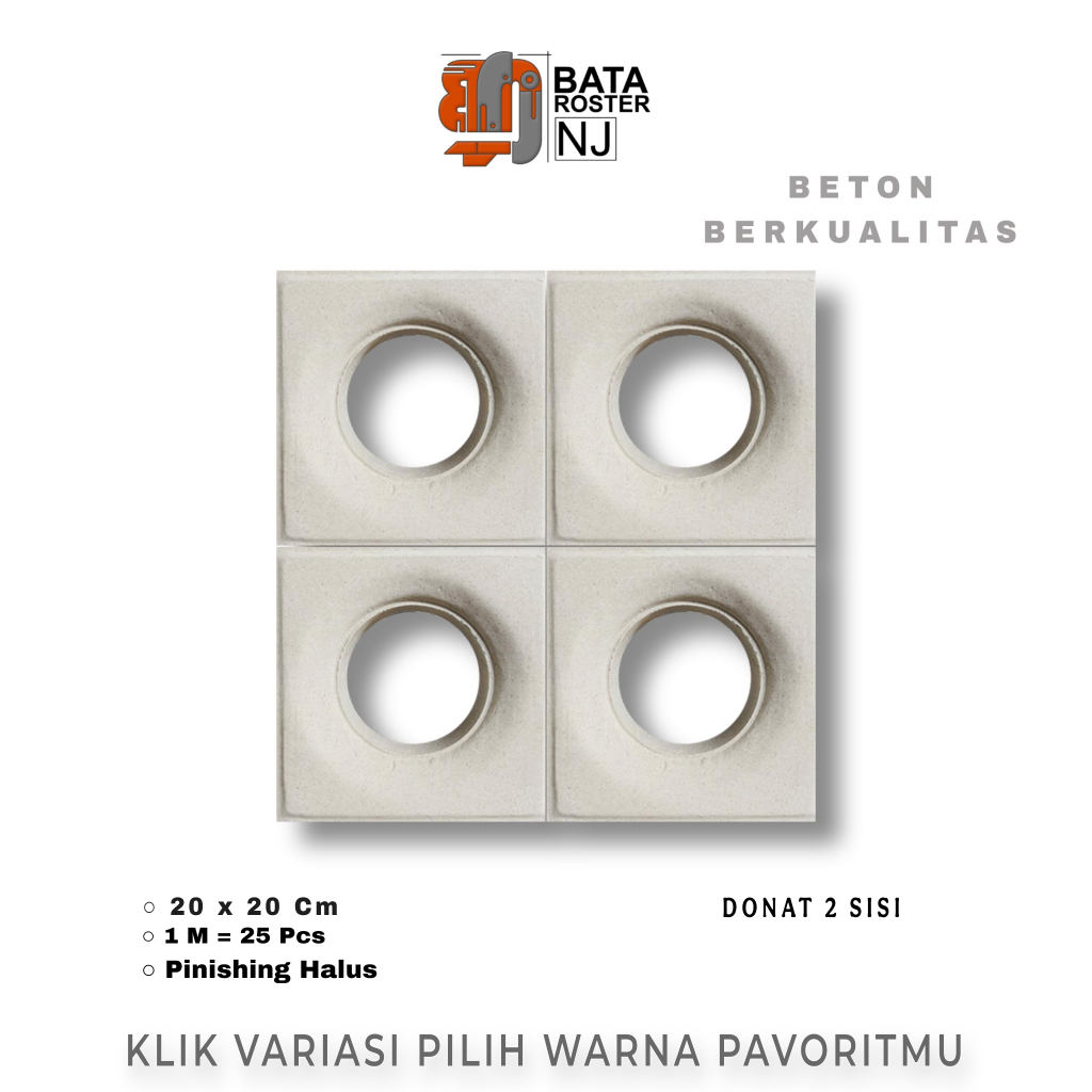 BATA ROSTER NJ - Roster Beton Minimalis - Model Donat, Ukuran 20 x 20 | Loster Putih | Ventilasi Udara