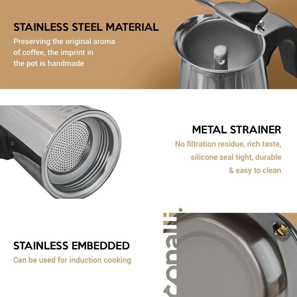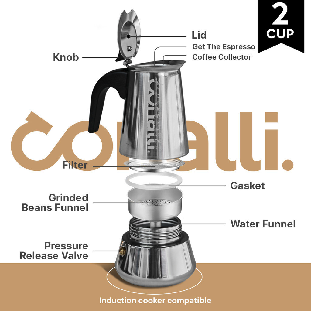 Coffee Mokapot Stainless Steel Induction 2cup 125 ml Moka Pot Kopi 2 Cup Espresso Maker