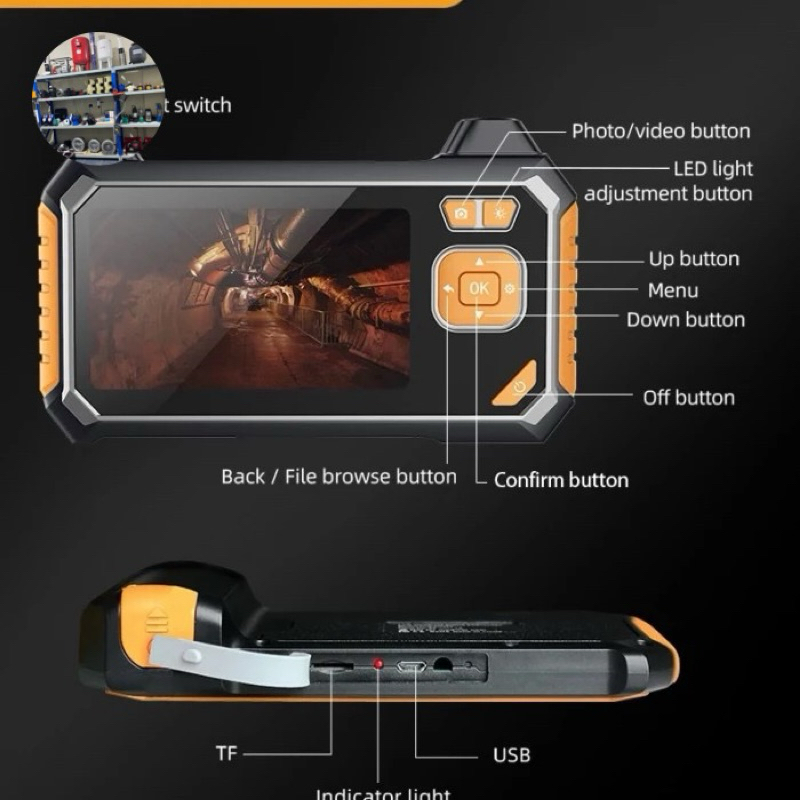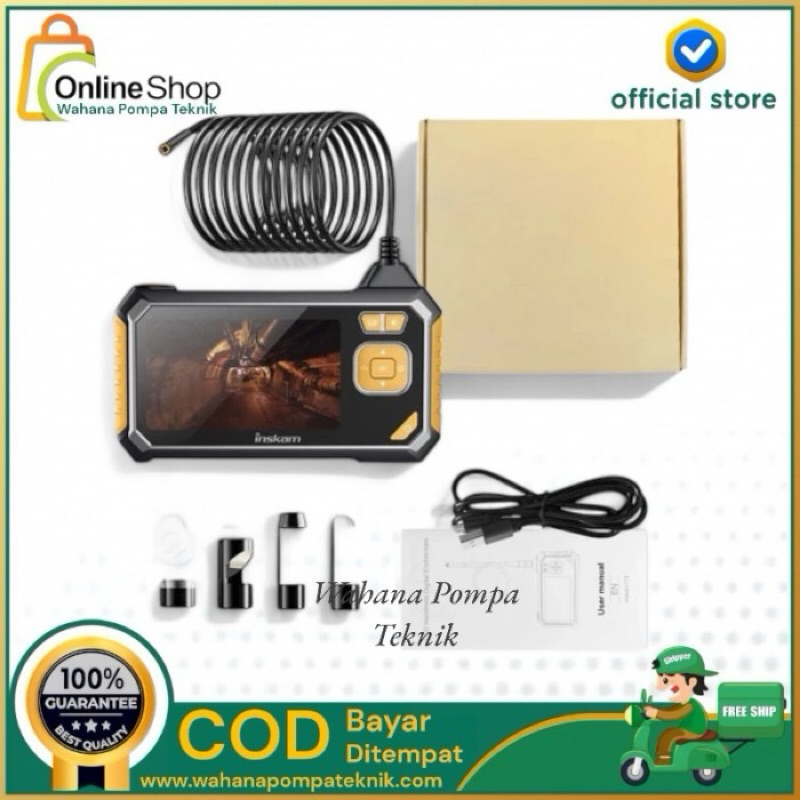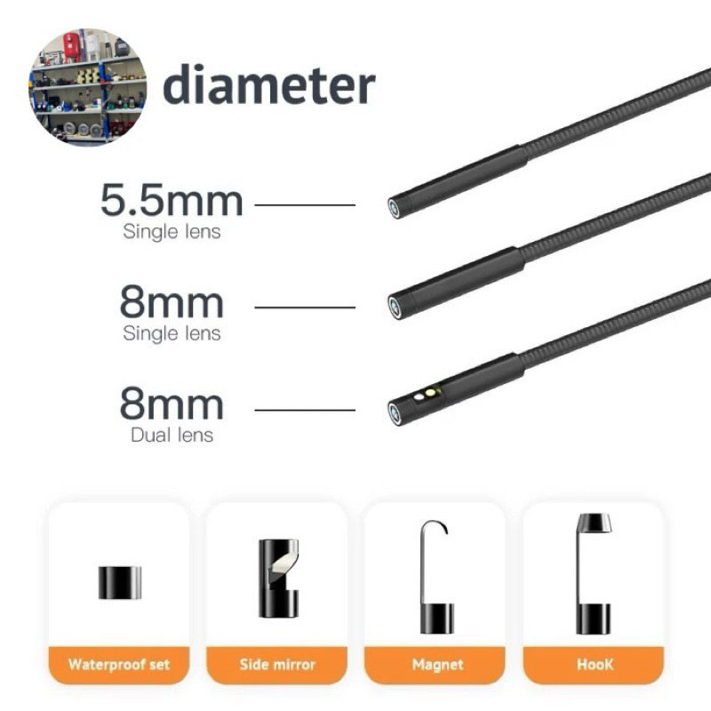 inskam113 Boroscope 5m snake Hard Cable 4.3" HD Screen 8mm Dual Lens