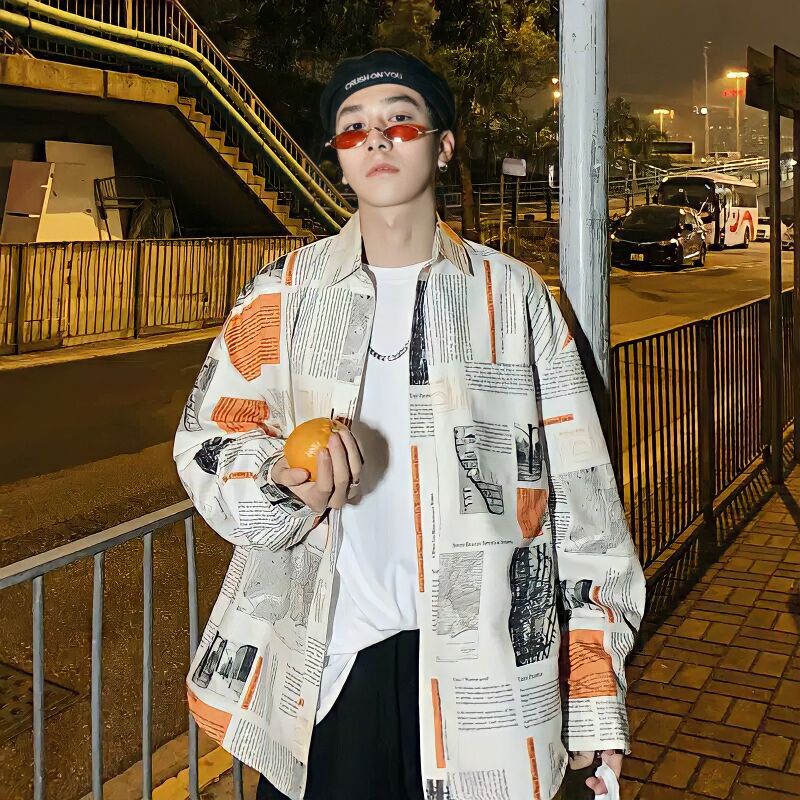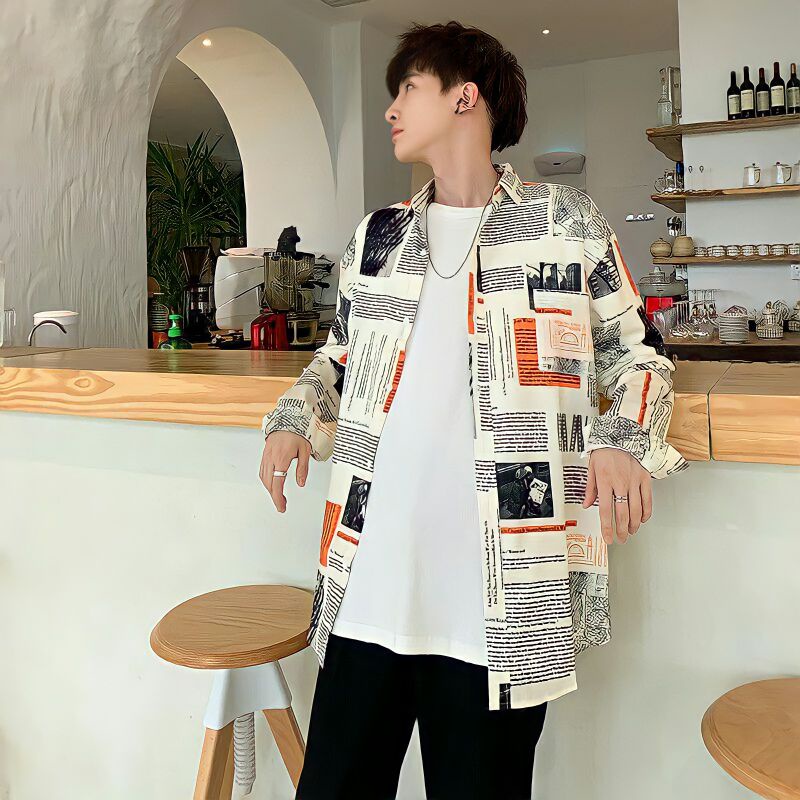 OVERSIZE NEWSPAPER SHIRT✨| ulzzang fashion | korean | kpop | kemeja pria wanita | aesthetic | murah