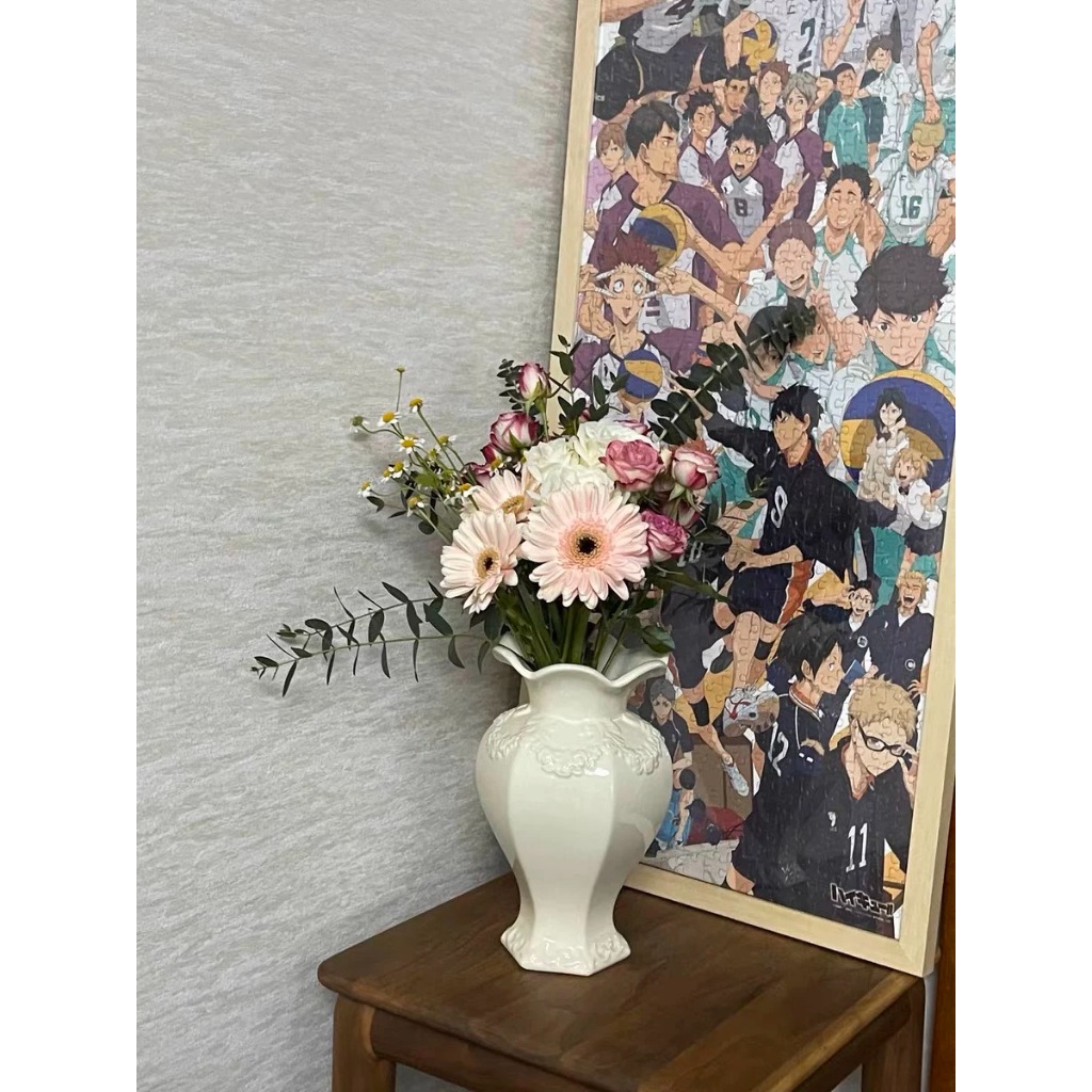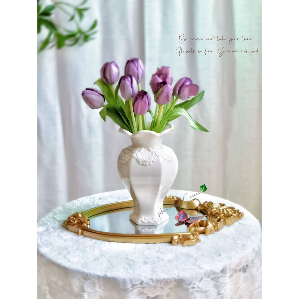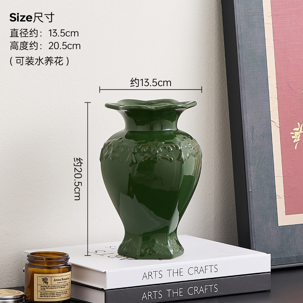 Eyre Vas relief seni Eropa krim mawar simulasi bunga mawar tepi gelombang bunga vas heksagonal ruang tamu rangkaian bunga desktop art relief vase cream color rose simulation flower wave edge hexagonal vase living room desktop flower arrangement