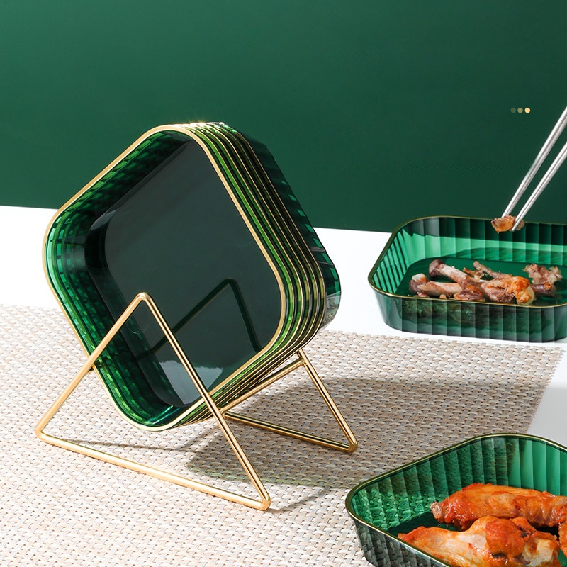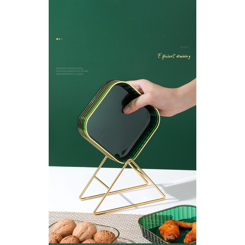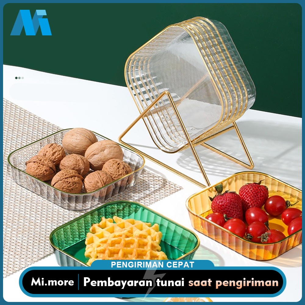 Set Wadah Makanan(8pcs Wadah Bening+1Tatakan Rak Gold ) Hijau/Transparent/Puith/Abu-abu