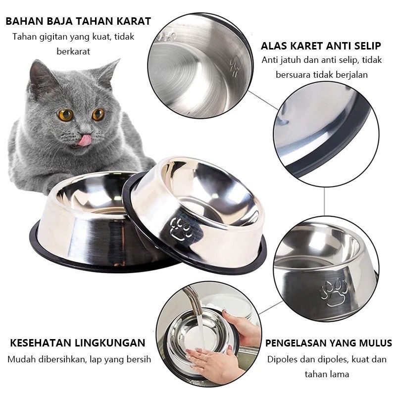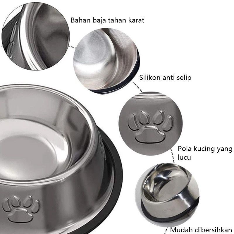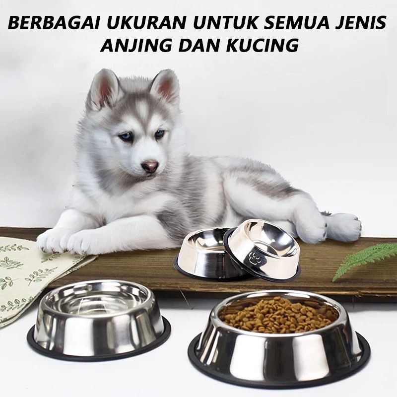 Pet Bowl Stainless Steel Anjing Kucing - Tempat Makan Minum Hewan [ L 22CM/ T 6CM ]