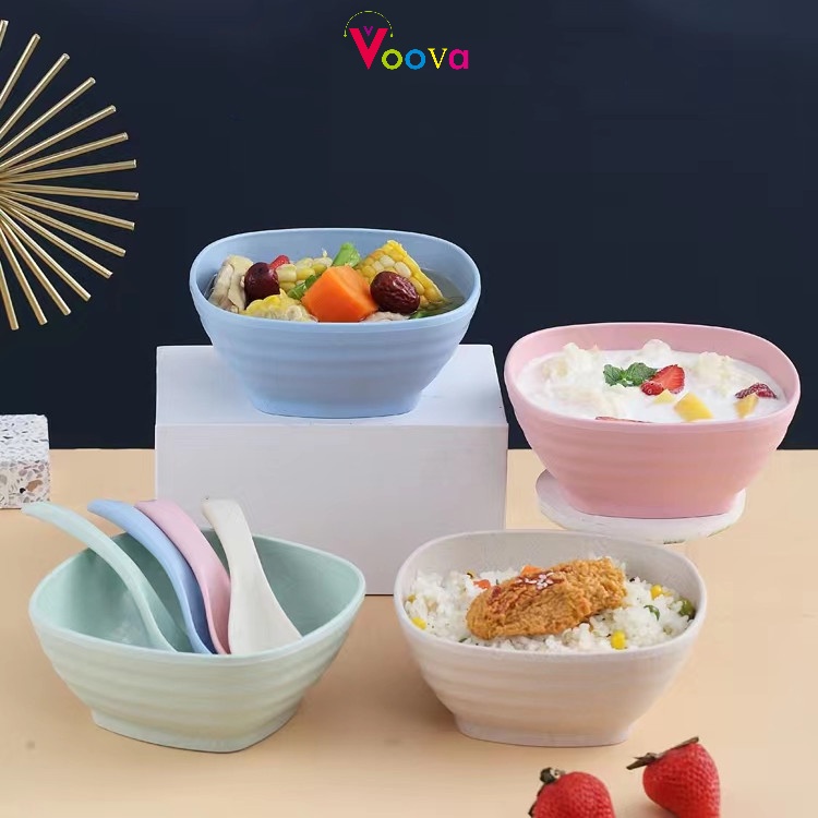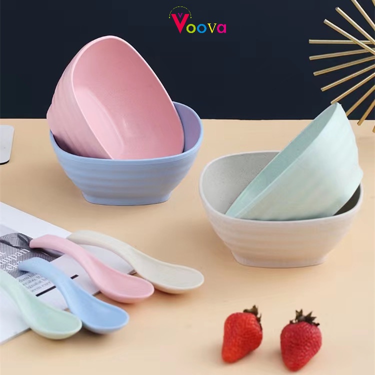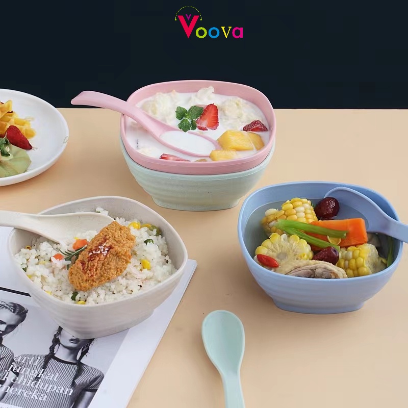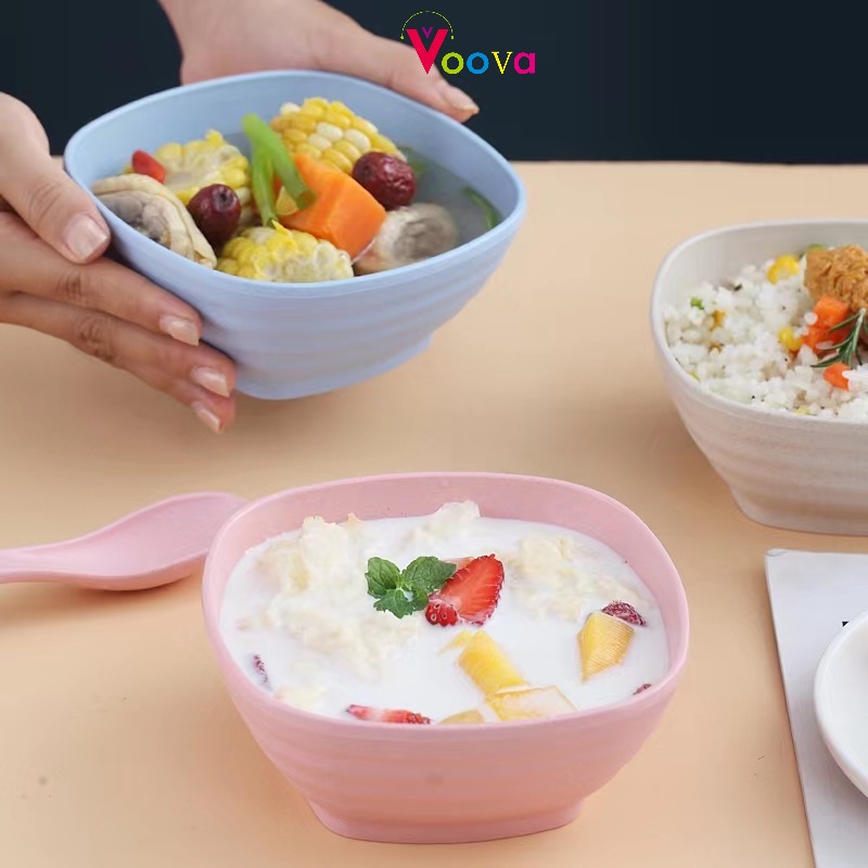 VOOVA Wheat Straw Mangkuk Salad, Peralatan Makan, Mangkuk Pencuci Mulut, Mangkuk Nasi Rumah Tangga Yang Besar, Mangkuk Mie, Mangkuk Sup