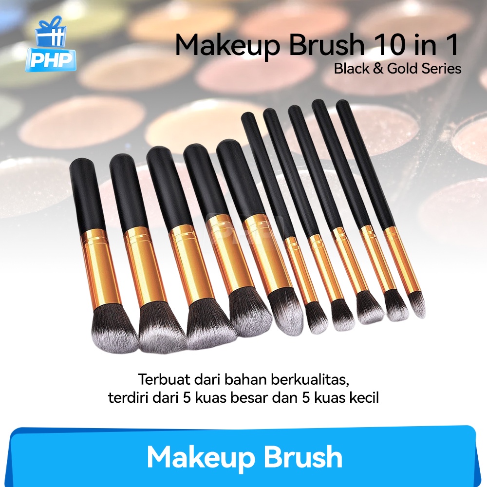#PHP Kuas Make Up Dandan Tata Rias / Black & Gold Makeup Brushes 10 in 1