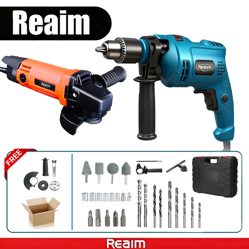 REAIM Bor Dan Gerinda Mesin Bor Listrik Mesin Gerinda Listrik Bor 13mm Mesin Gerinda Tangan