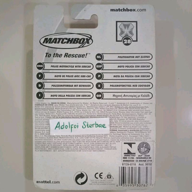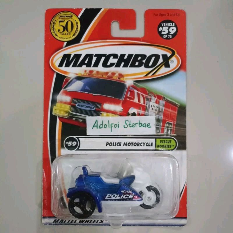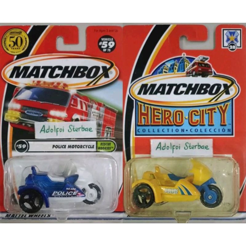 matchbox police motorcycle with sidecar rescue rookies 59 50 years hero city collection coleccion 28 roda ban 3