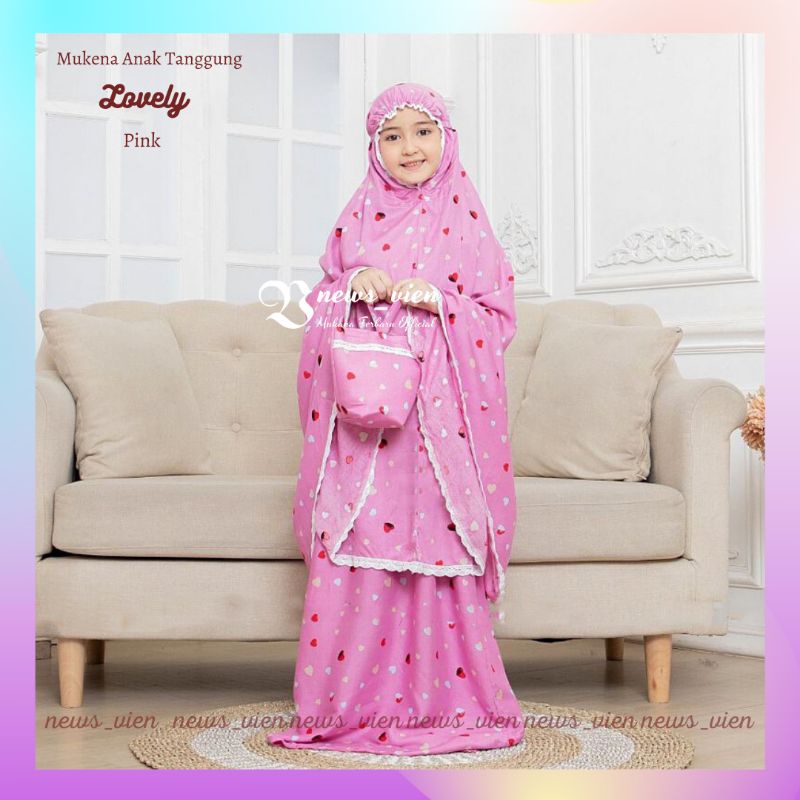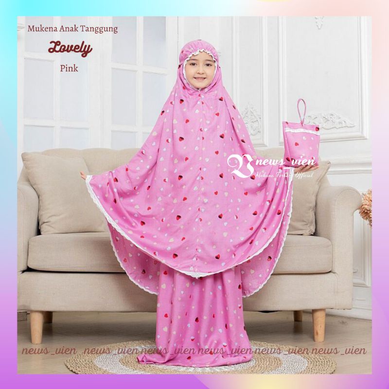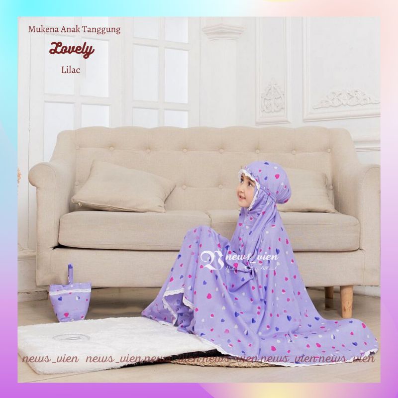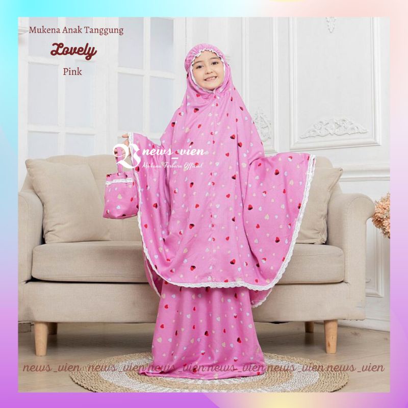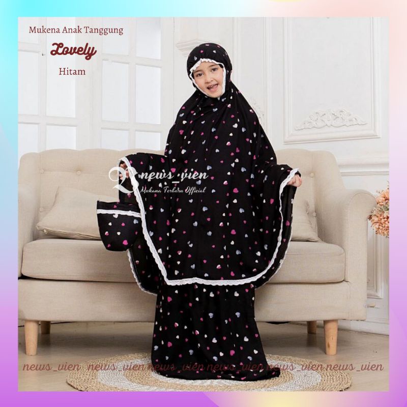 Mukena anak usia 8 9 10 11 tahun katun rayon adem lembut / mukenah anak perempuan terbaru remaja SD / mukena anak motif love pink hitam lilac / mukena anak travelling cantik lucu