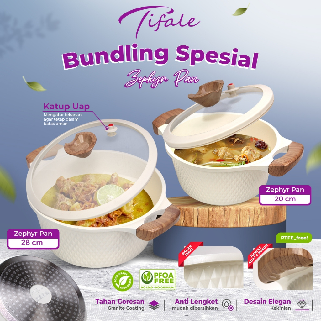 [RAMADAN SALE] Tifale Zephry Casserole Pan 20 24 28 CM Panci Susu Marble Coating Lapisan Anti Lengket Panci Mpasi