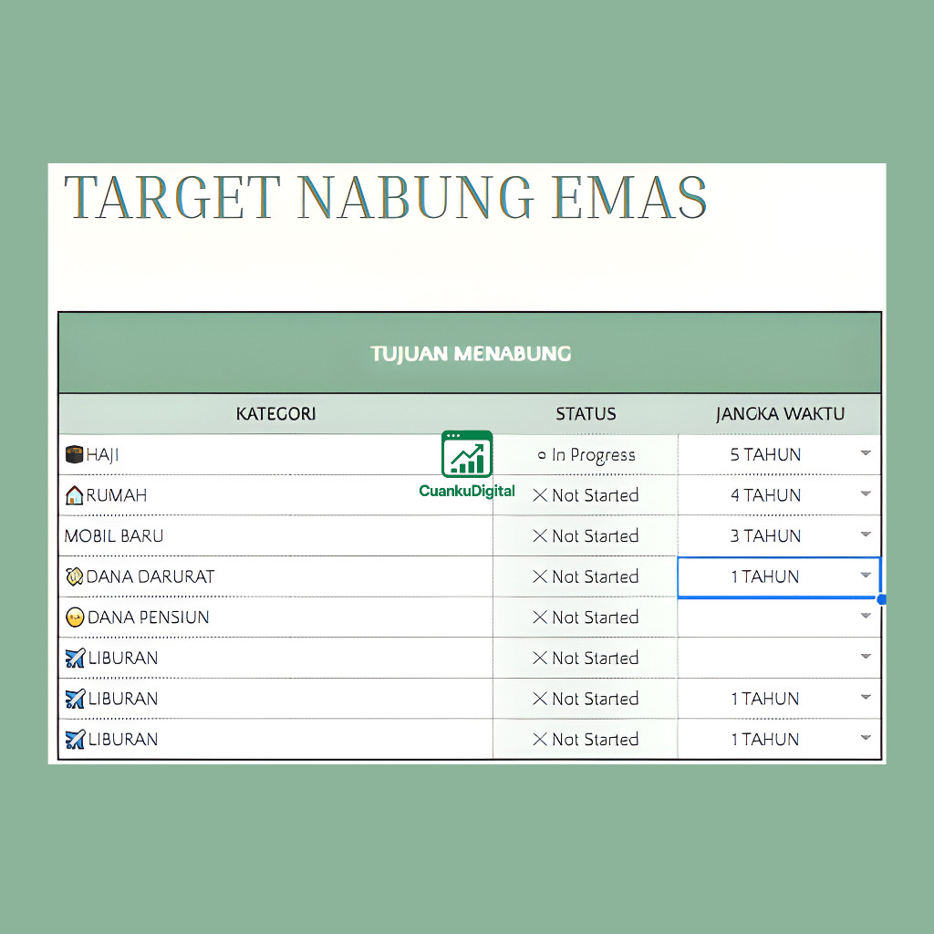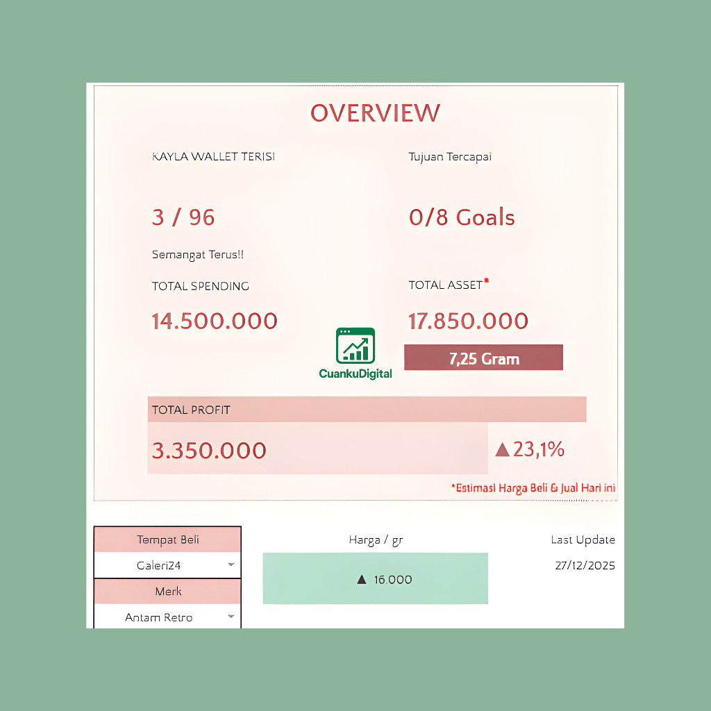 Template Nabung Emas Google Sheets Otomatis untuk Target dan Monitoring Investasi