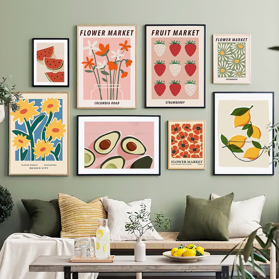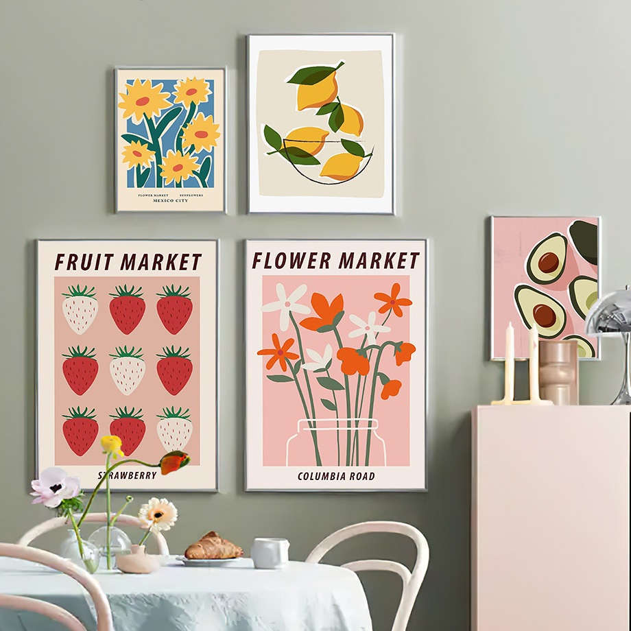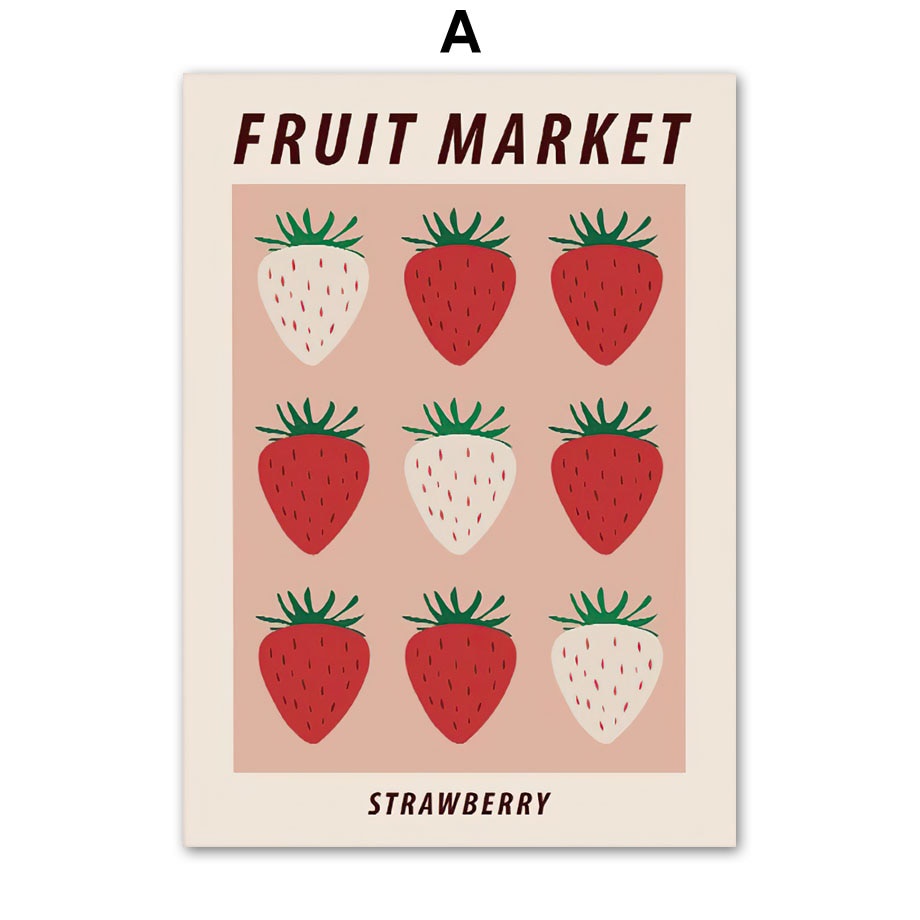 Hiasan Dekorasi Dinding Ruang Tamu Rumah Tema Bunga Lukisan Seni Nordic Semangka Stroberi Pasar Buah