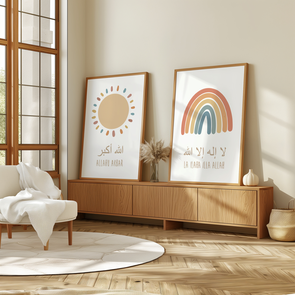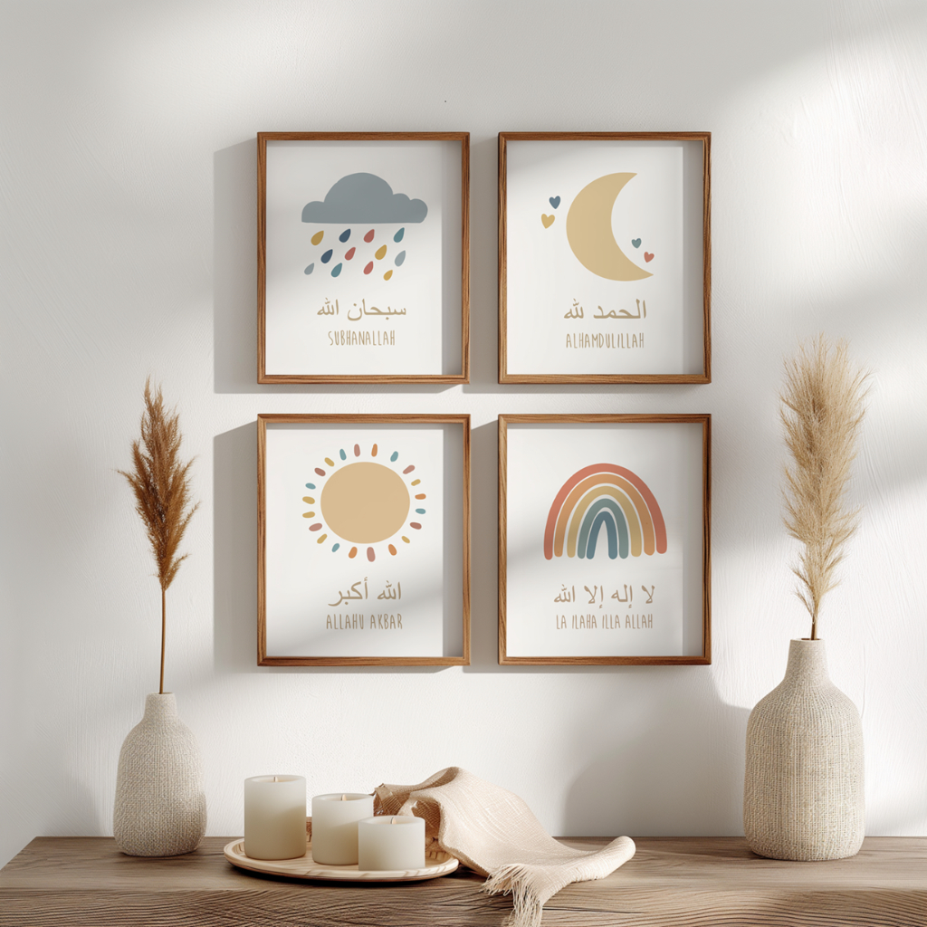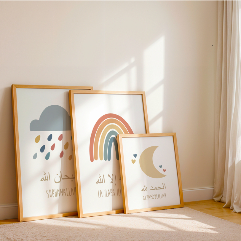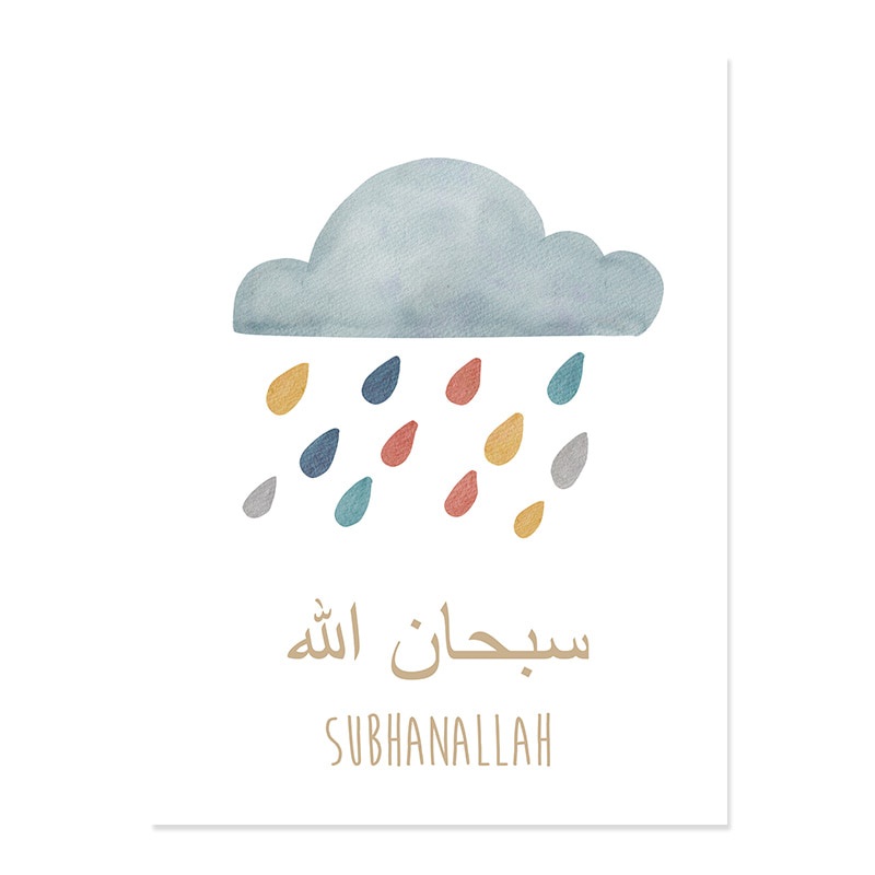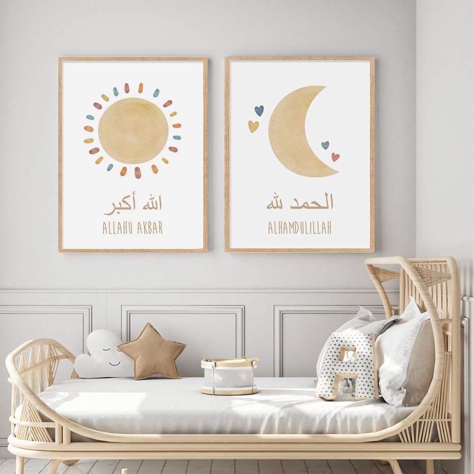 Wall Dekor Hiasan Dinding Kaligrafi Islamic Alhamdulillah Rainbow Moon Sun Clouds Nursery Kids Room