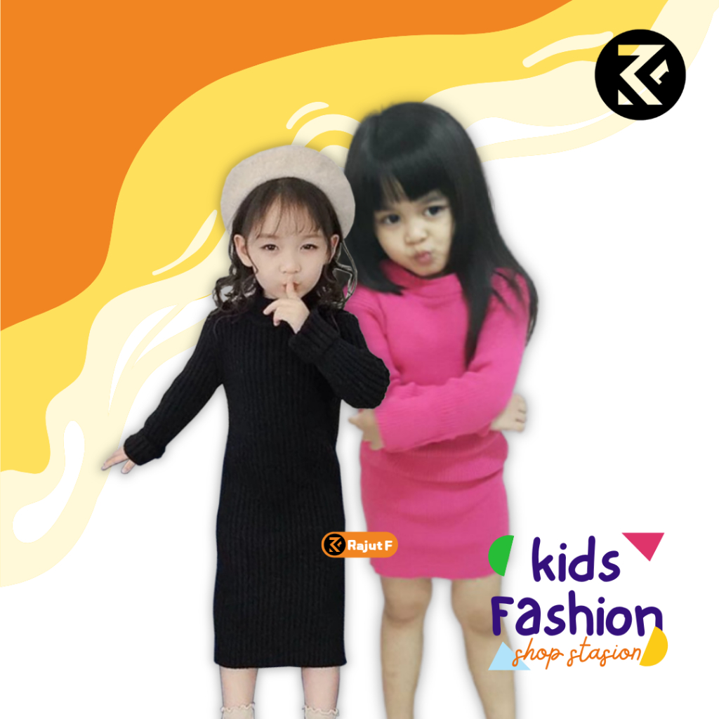 Dress rajut anak perempuan lengan panjang ADILA KNIT POLOS allsize usia 1-3 tahun