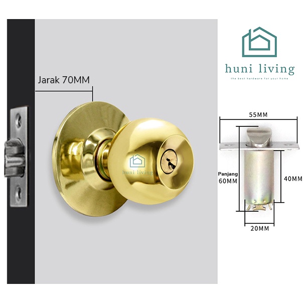 Kunci Pintu Kamar Mandi Bulat Kunci Bulat WC Toilet Cylindrical Knob 70MM