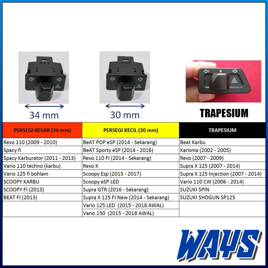 Saklar Sein Hazard 30mm 34mm Flasher CR7 Honda Beat Scoopy Spacy Vario Supra Revo Shogun Spin