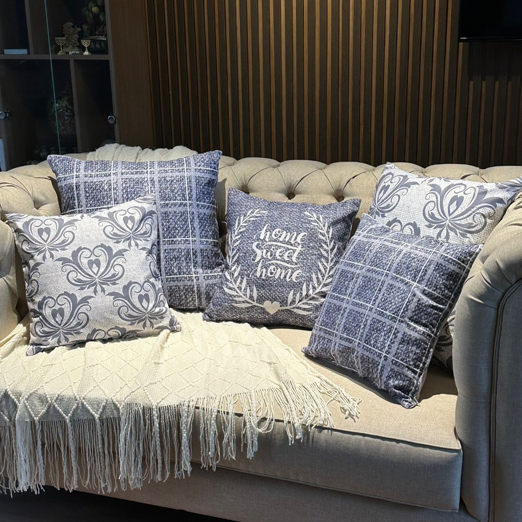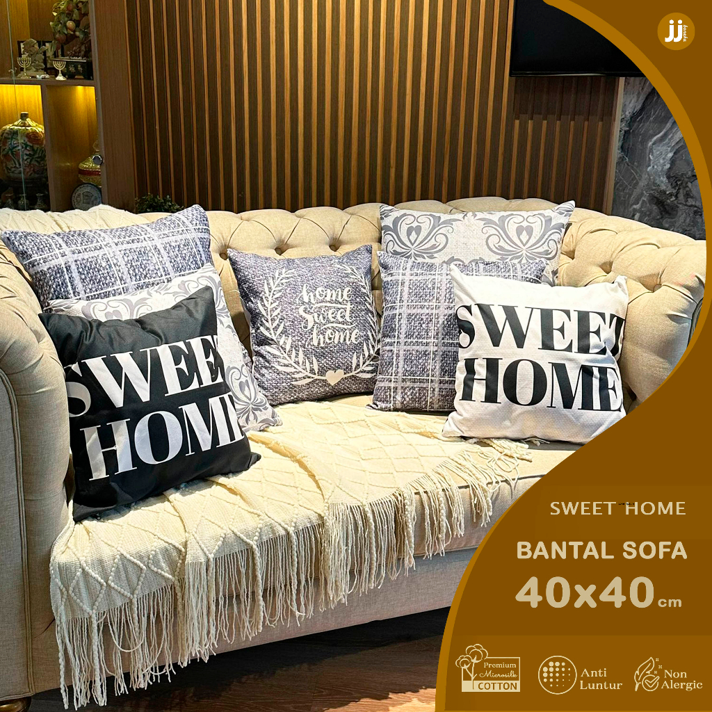 BANTAL SOFA PRINT MOTIF SWEET HOME 40x40 / 50x50 CM HITAM PUTIH BLACK WHITE MONOKROM