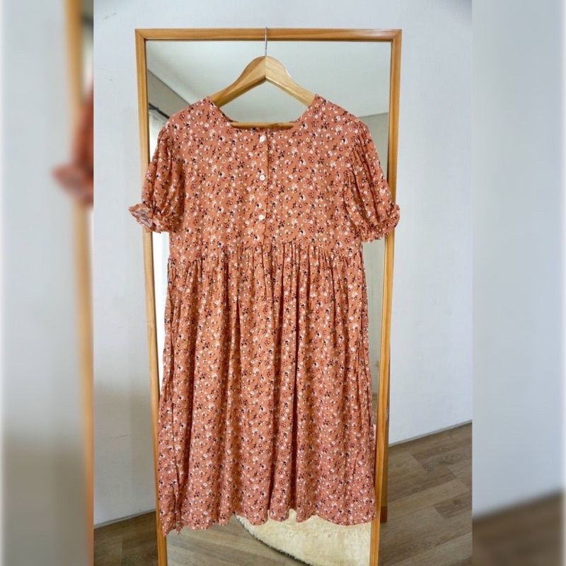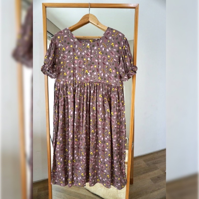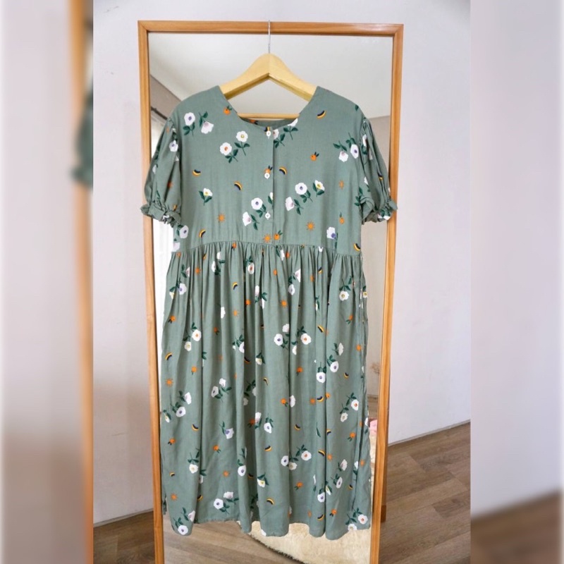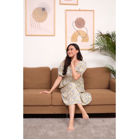 Daster Busui Kancing Rayon Premium Homedress Puff Dress Kerut