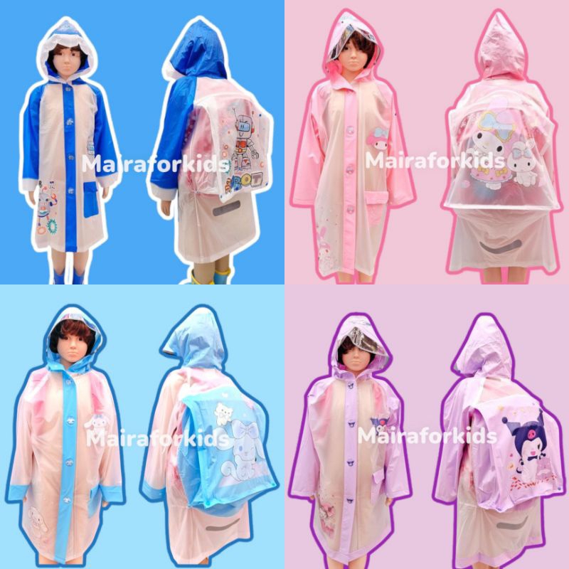 Jas Hujan Kuromi Melody Cinnamoroll Robot Cars | Jas Hujan Terusan Anak Perempuan dan Laki-Laki | Jas Hujan Ponco Anak Karakter Import | Raincoat Anak