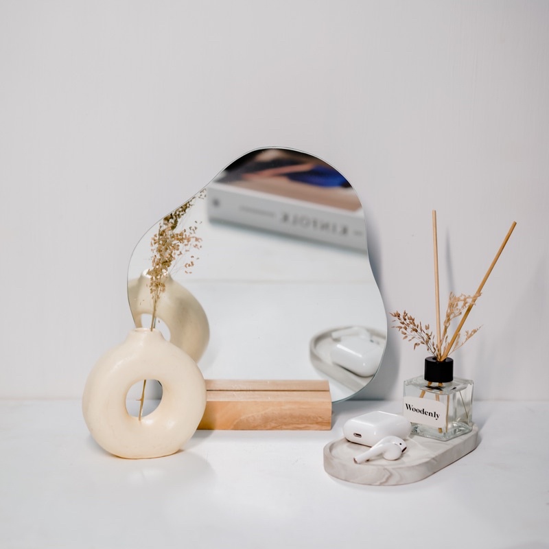 Cermin Aesthetic / Aesthetic mirror by woodenly /lrregular mirror / woodenly / Cermin / Cermin bulat / Cermin fullbody / Cermin unil / Cermin meja/ Kaca / Home decor / Barang unik / cermin fullbadan /