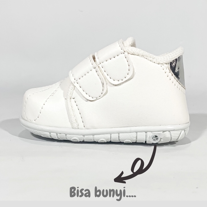 Sepatu Kets sneaker Bayi BUNYI Perekat Putih Baby Lokal SBY24