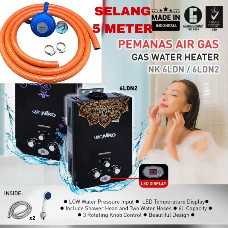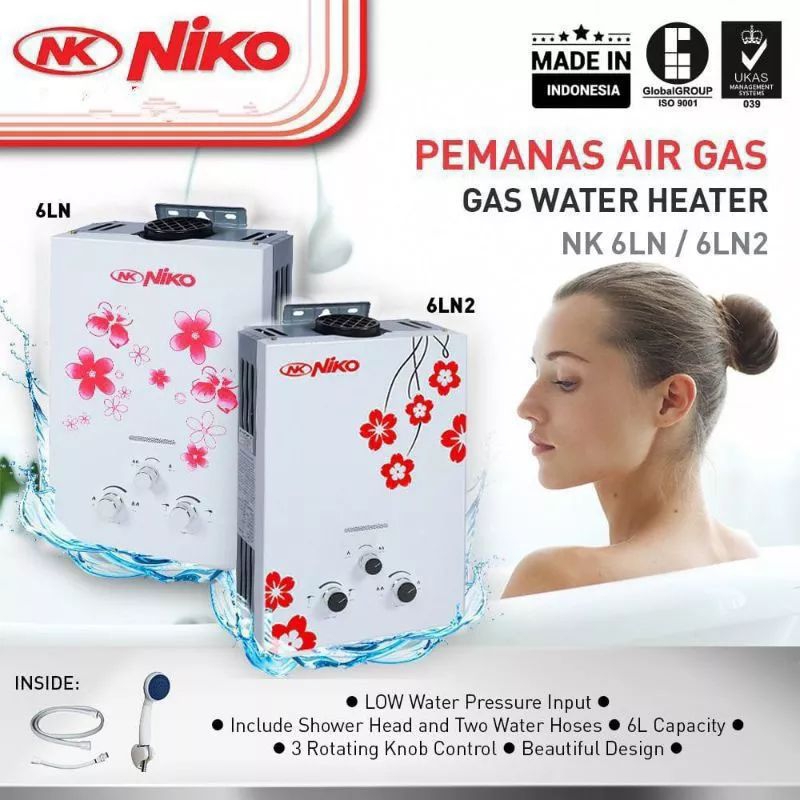 Niko , NK6LN Putih , Gas , Water , Heater, Water Hiter - Water Heter Pemanas Air