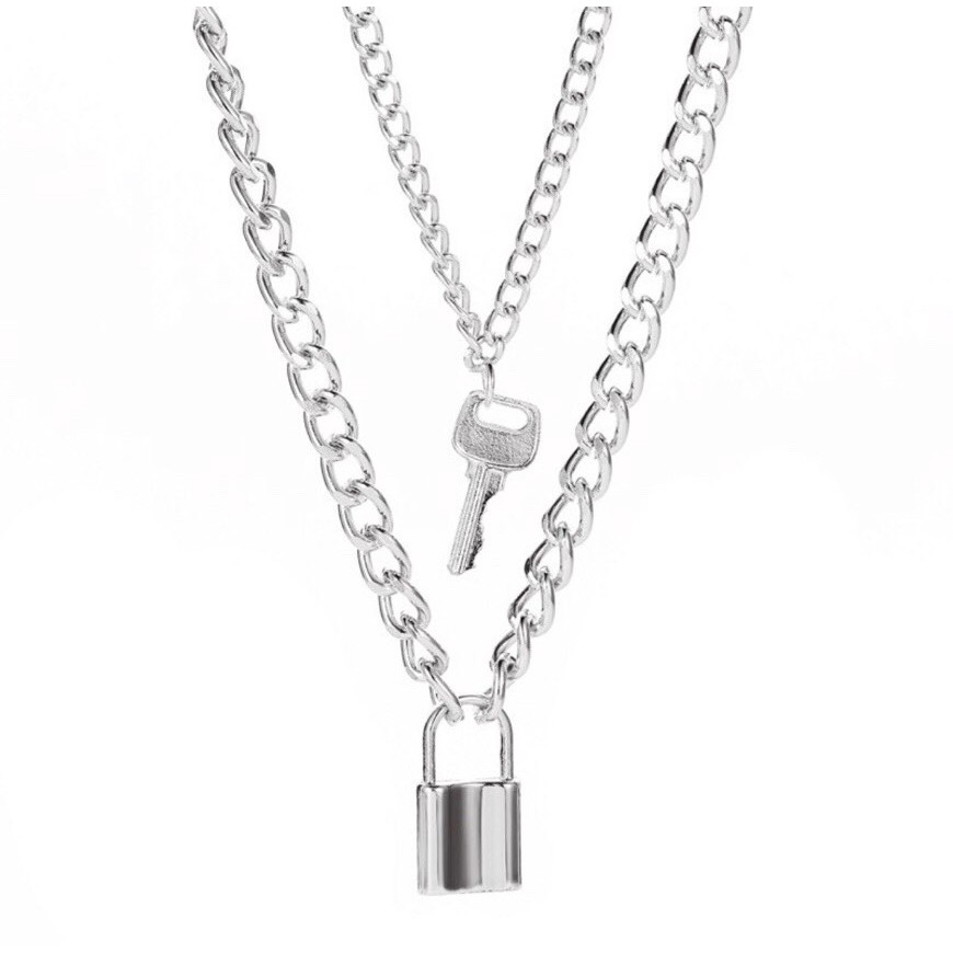 Kalung Rantai Gembok dan Kunci Tebal